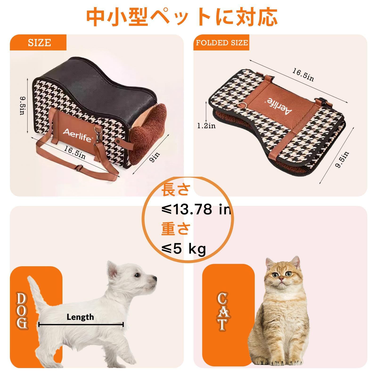 【高品質&型崩れしにくい】優れた高品質素材を使用しており、耐?み、毒性もなく、子犬によい寝心地を与えてくれます。内部には厚みのあるしっかりとした芯材を採用し、長時間使用しても型崩れしにくい、立体的で美しい外観、車内でも室内でもスタイリッシュに使用できるデザインです。 色 ブラウン 材質 ベルベット、リネン、レザー、PEボード、中空ボード、スポンジ ブランド Aerlife 商品の寸法 42長さ x 23幅 x 25高さ cm 推奨最大重量 6 キログラム 最後までご確認頂き誠にありがとうございました。 上記をご確認頂き、ご購入いただけましたら幸いです。 何かご不明な点がございましたらお気軽にメッセージからお問い合わせ下さい。