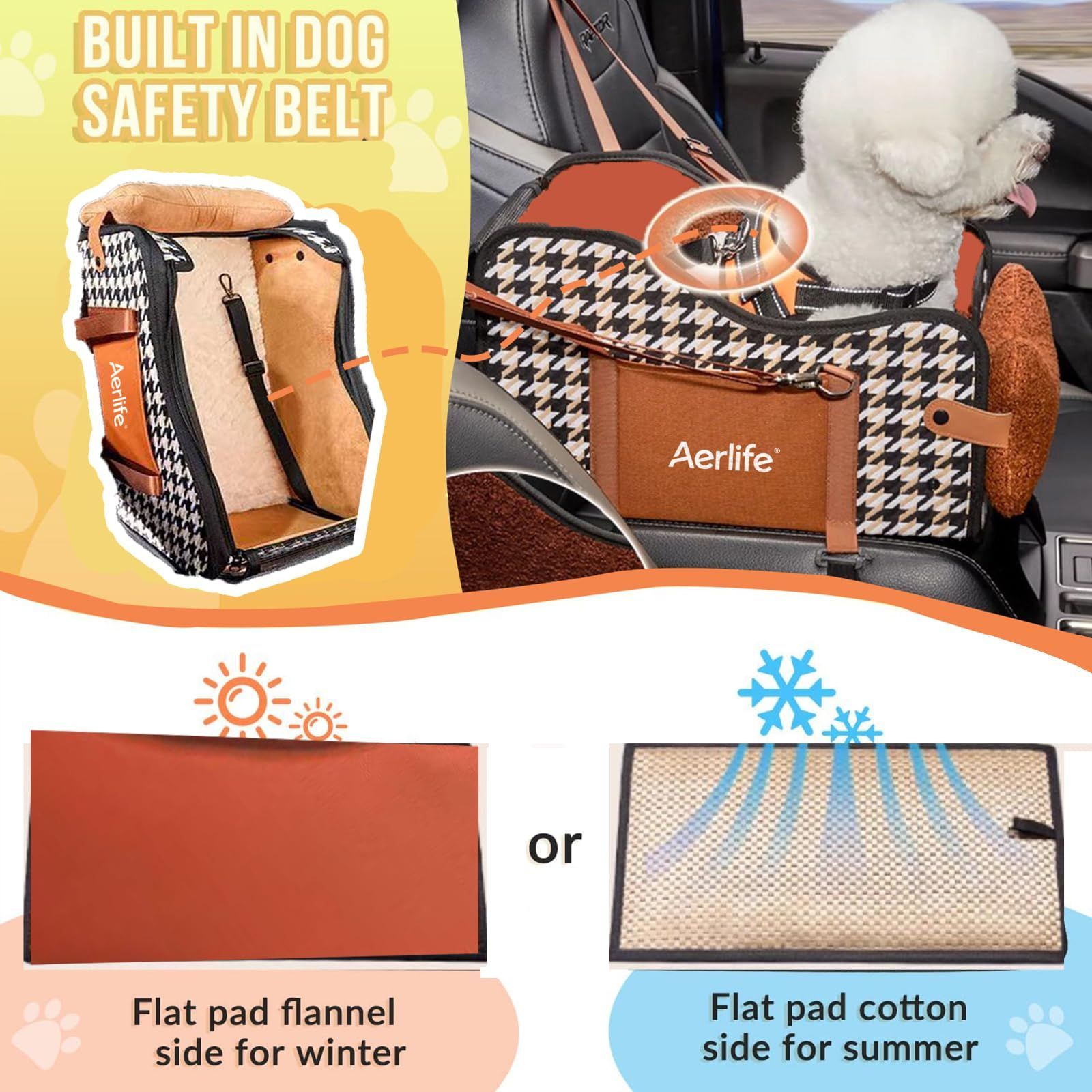 【2025年進化】Aerlife 車 犬 ドライブボックス 可愛い 助手席 ペット用 ドライブシート リード付き 飛び出し防止 小型犬 ドライブベッド 折り畳み式 キャリーバッグ 3way ペットカーシート クッション付き 猫 お出かけ 車ペット用品 洗い可能 夏冬兼用 アウトドア BR