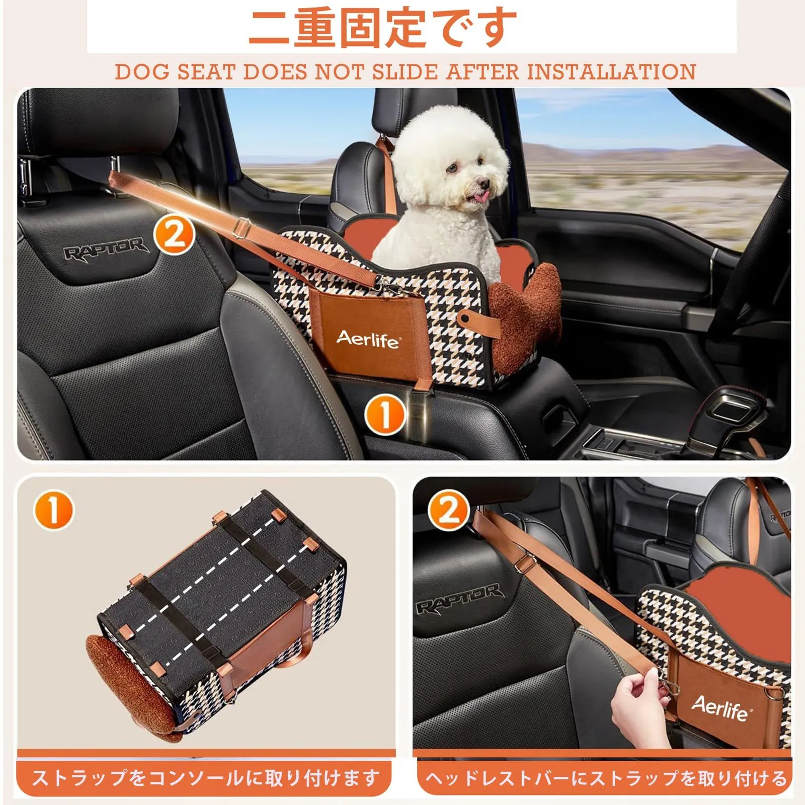可愛い ドライブボックス 助手席 ペット用 ドライブシート リード付き 飛び出し防止 犬 小型犬 ドライブベッド 折り畳み式 キャリーバッグ 3way 車 ペットカーシート クッション付き 猫 お出かけ 車ペット用品 【2025年進化】Aerlife 洗い可能