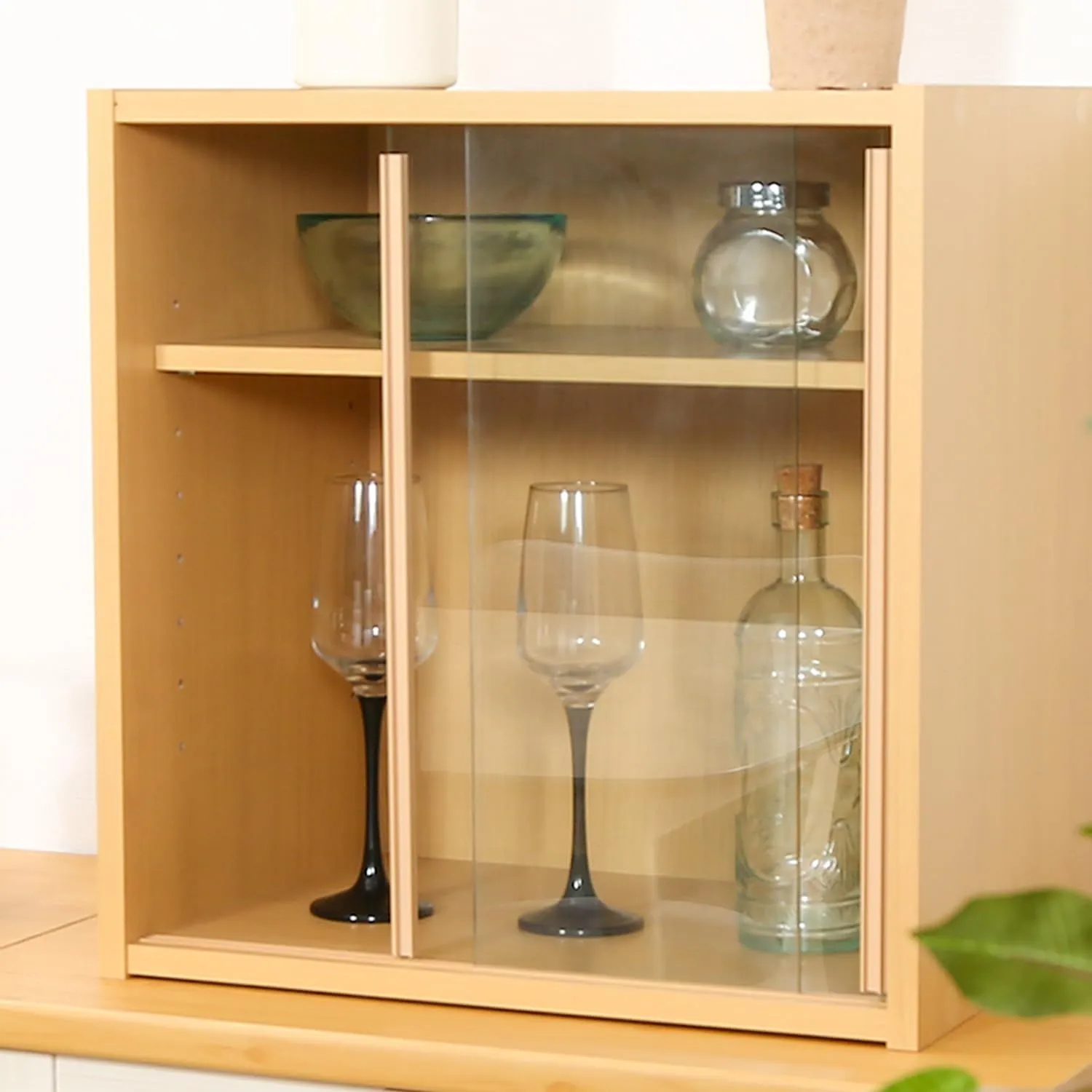キッチン収納 幅43×奥行29×高さ44cm 食器棚 ナチュラル ガラス扉 可動棚 不二貿易 組立品 81908