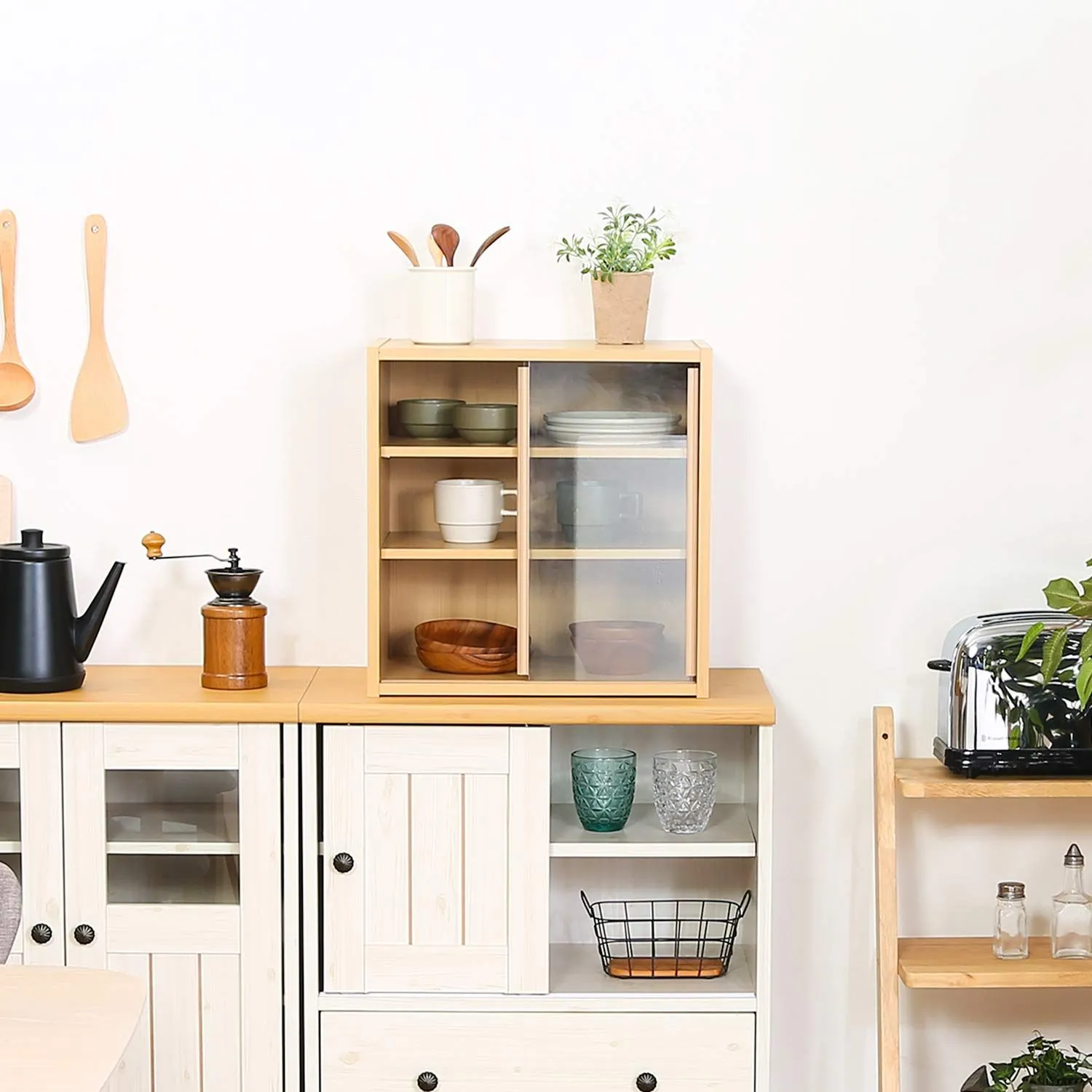 扉はスライド式なので、奥行が少ないスペースでも扉の場所をとらず、食器を出し入れすることができるのも嬉しいポイントです♪