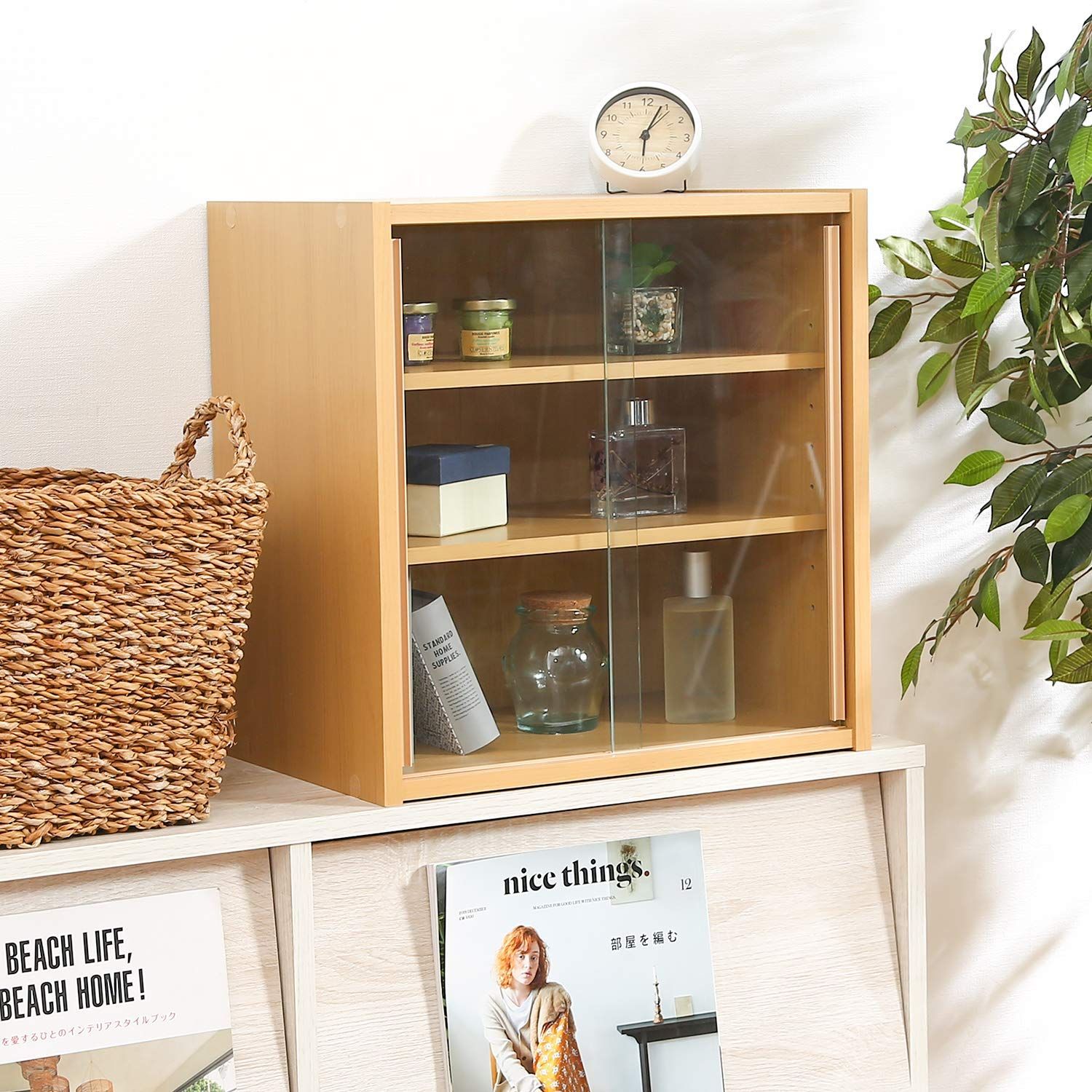 不二貿易 食器棚 キッチン収納 幅43×奥行29×高さ44cm ナチュラル ガラス扉 可動棚 組立品 81908