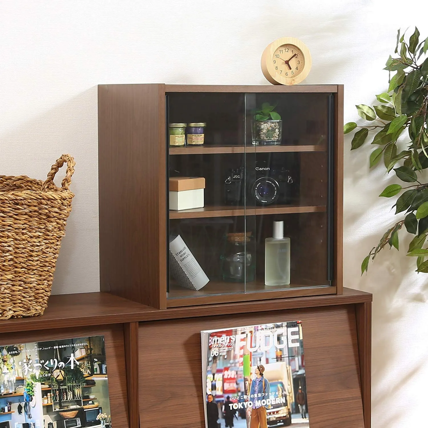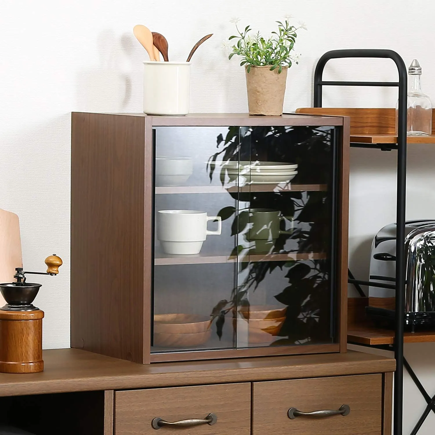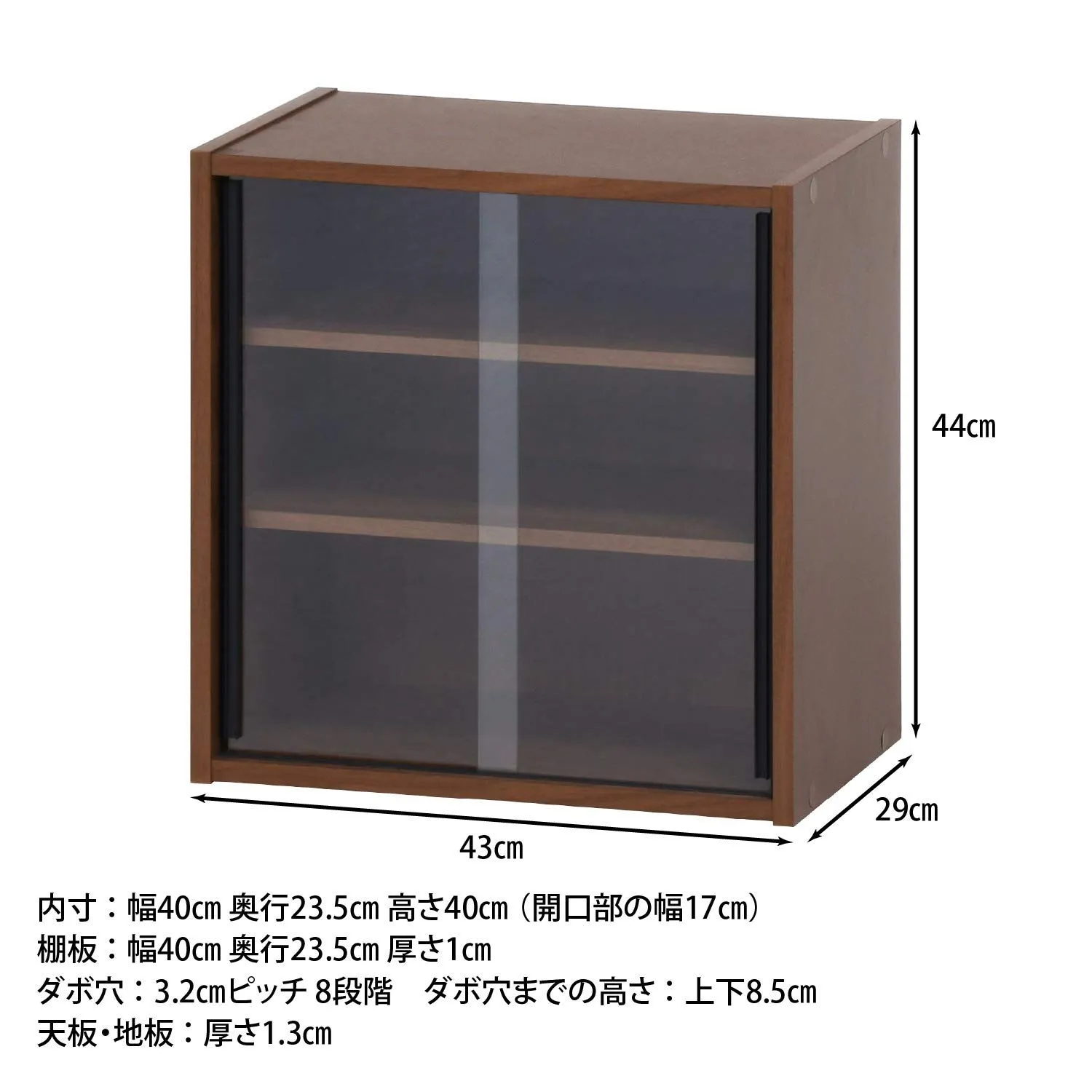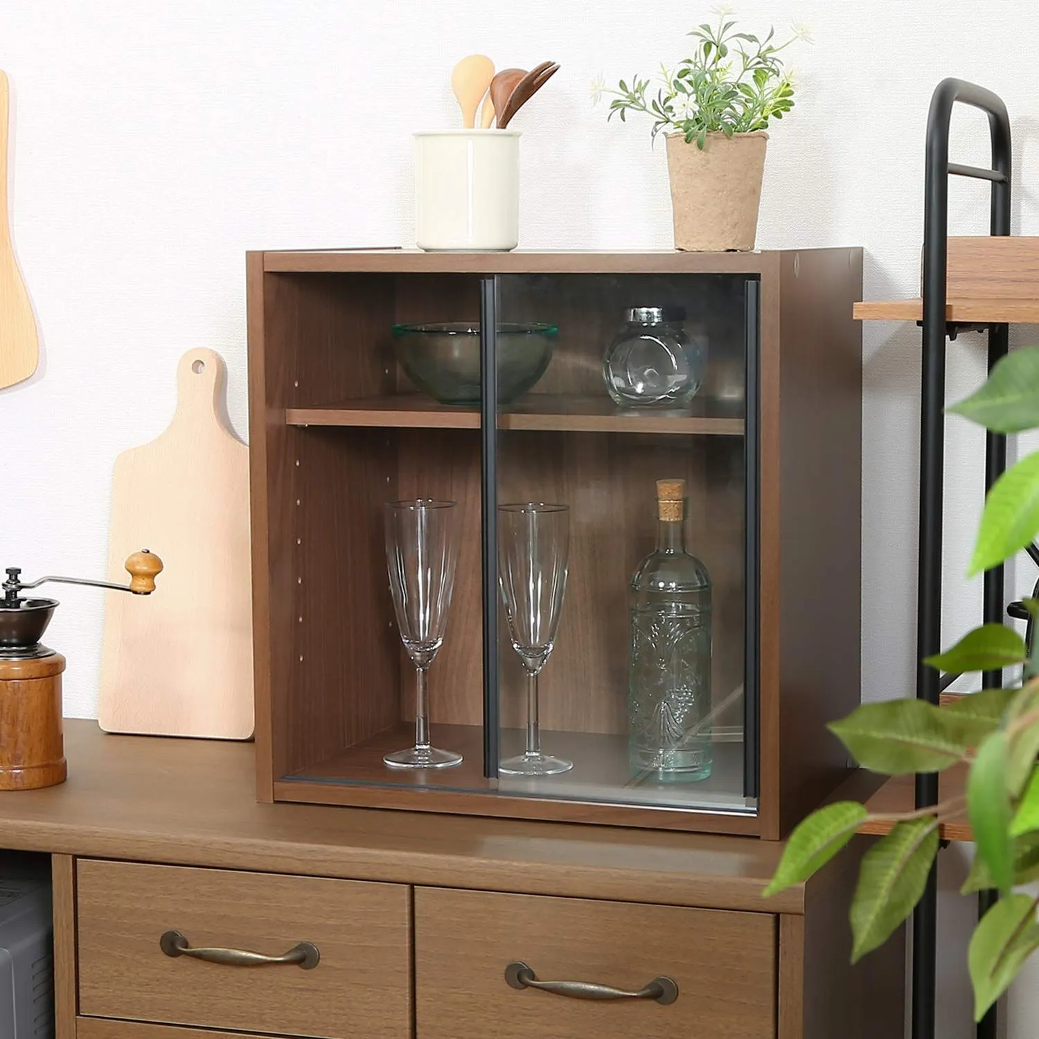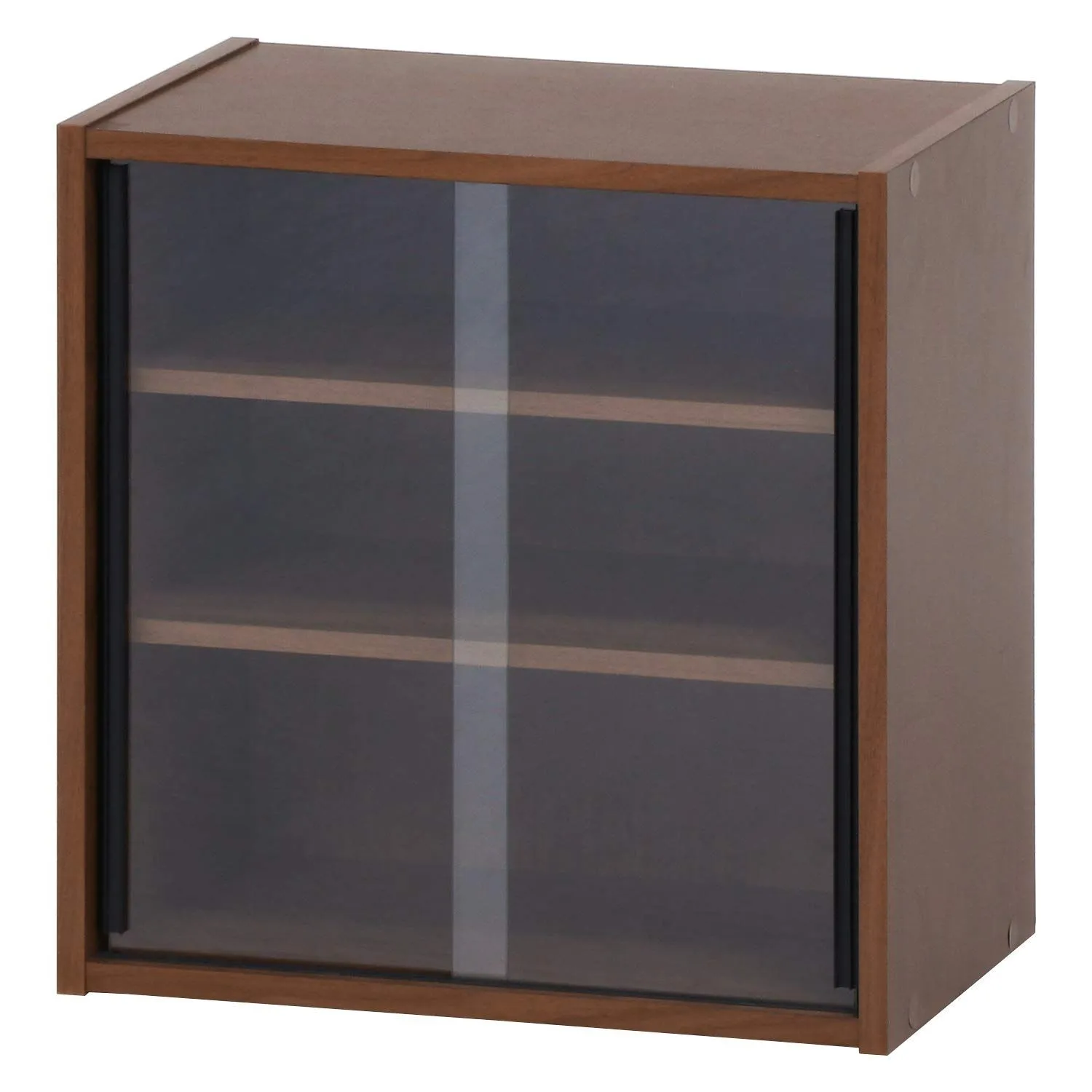 組立品 可動棚 ガラス扉 99432 ミディアムブラウン 幅43×奥行29×高さ44cm キッチン収納 食器棚 不二貿易