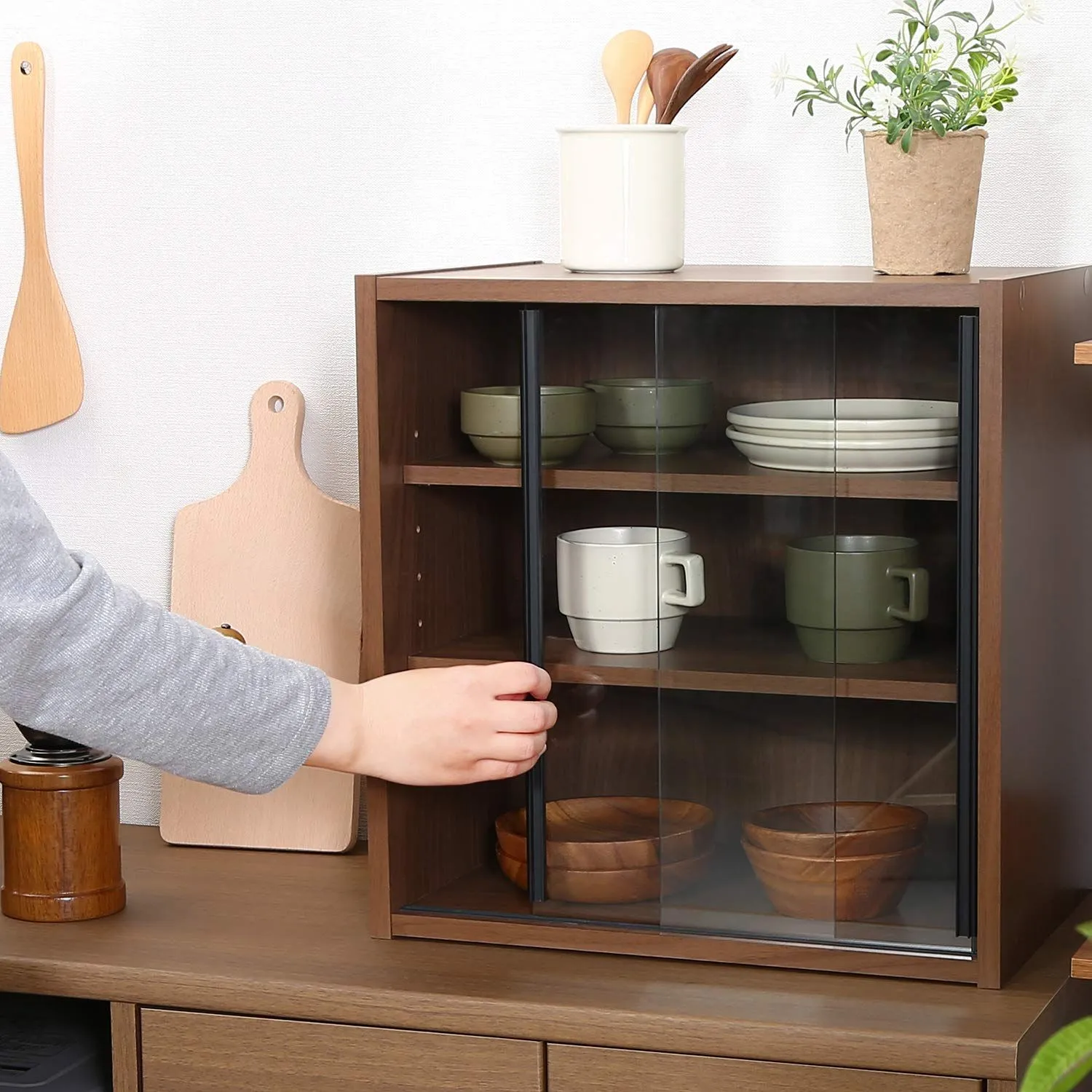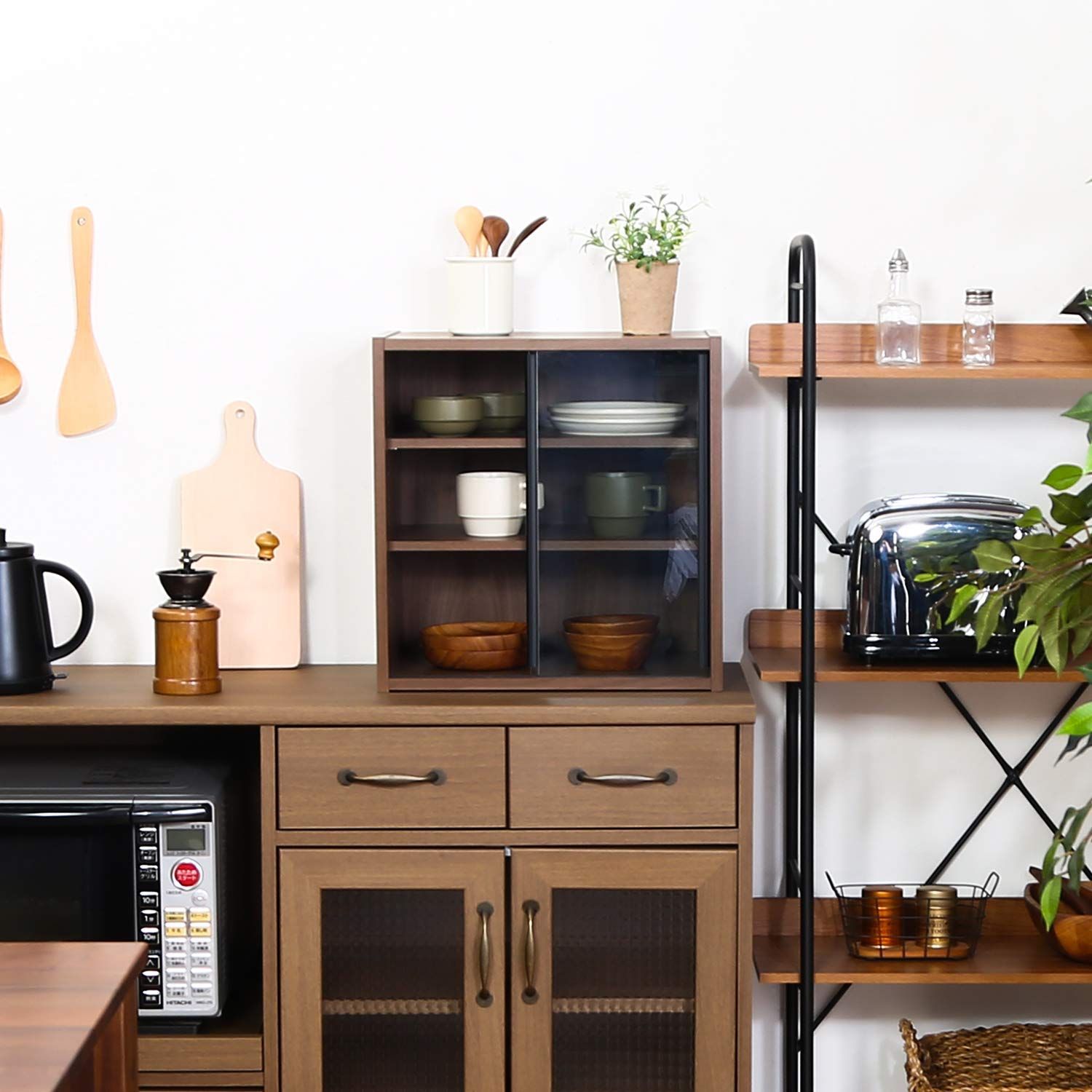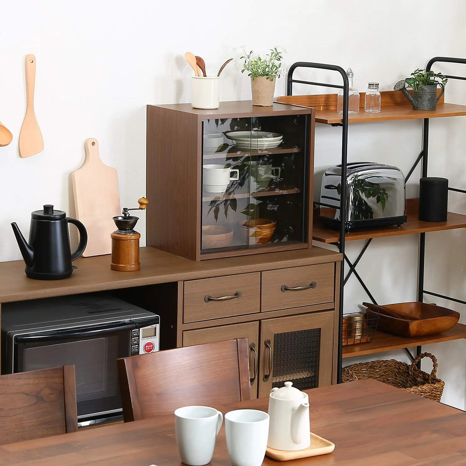 場所を取らずに設置できる、丁度いいサイズの食器棚。