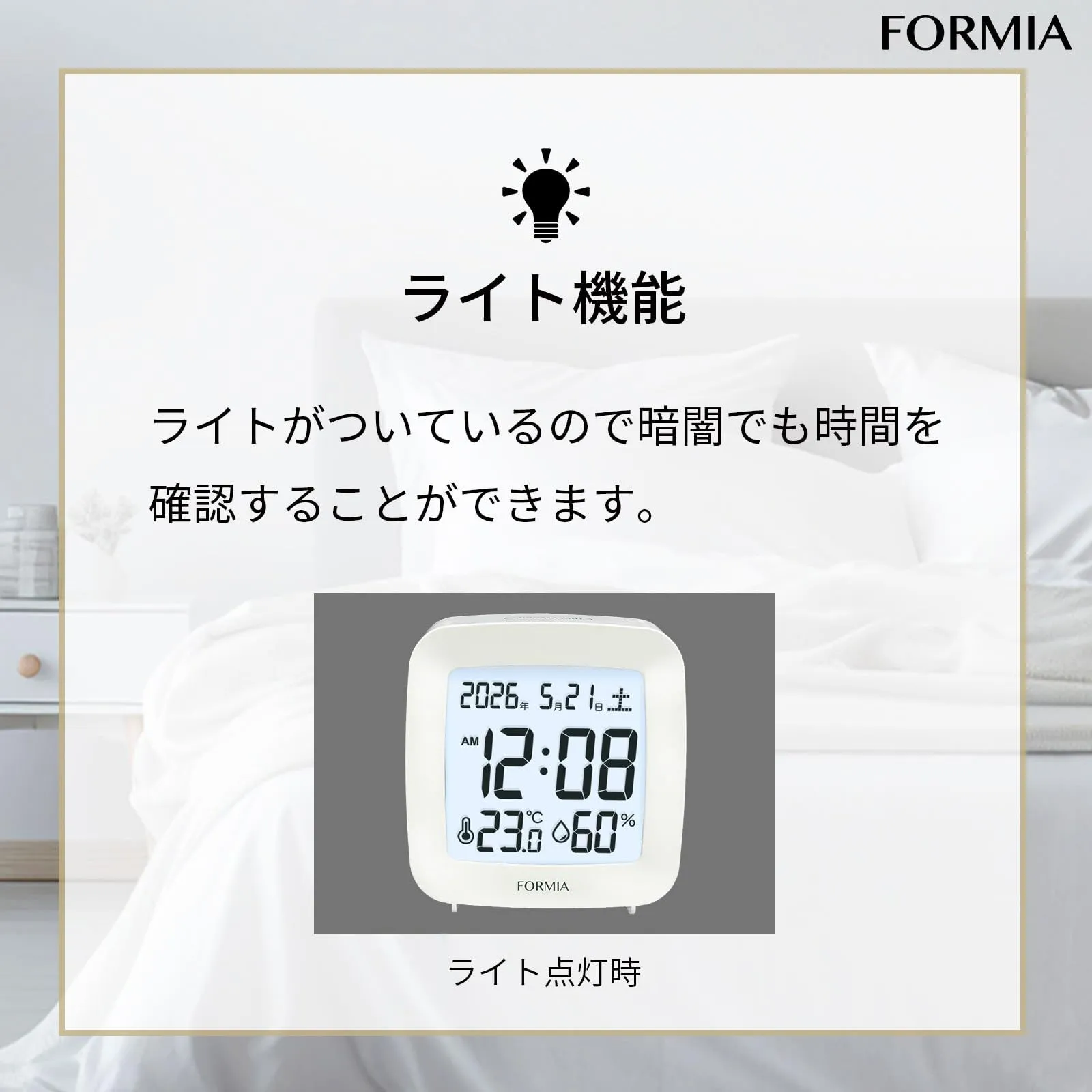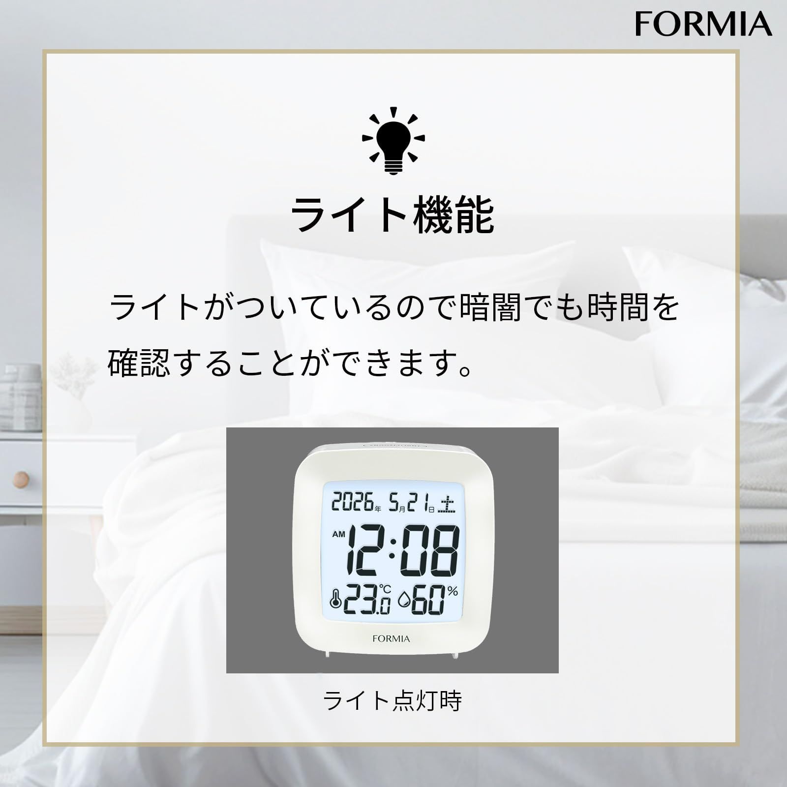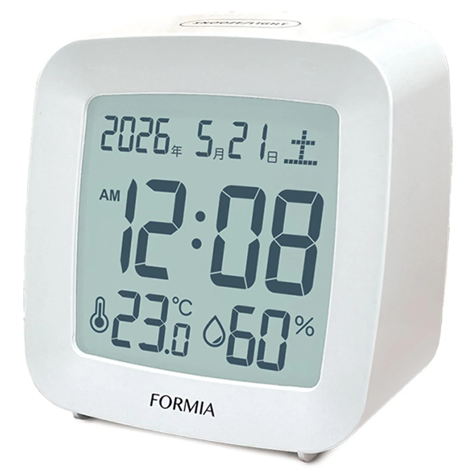 Formia(フォルミア) 置き時計 目覚まし時計 見やすい 温度 湿度 日付 曜日 電子音 スヌーズ ライト デジタル 保土ヶ谷電子販売 ホワイト HT-042WH