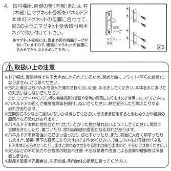 付属品レール×1本、グリース×1個、取手×1セット、取手取付用ネジ(ナベ頭)×2本、レール取付用木ネジ(トラス頭)×6本、マグネット受板取付用木ネジ(皿頭)×8本、マグネット受板(仮止め用接着テープ付)×4枚、取扱説明書