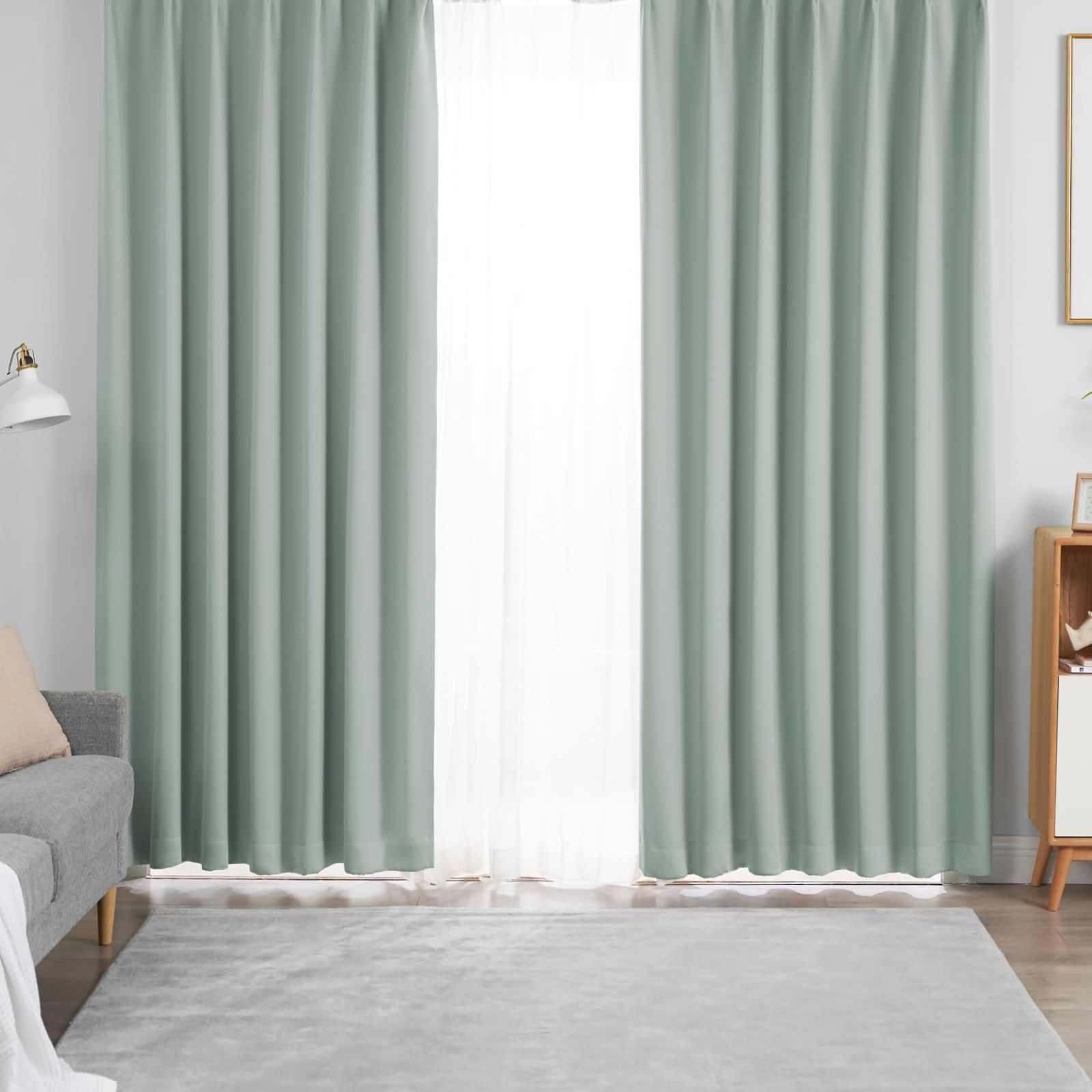 Hansleep カーテン 1級遮光 2枚組 幅100cm丈190cm カルダモングリーン 断熱 防寒 防音 省エネ 厚手 無地 おしゃれ 洗える リビング用 (カルダモングリーン, 幅100cm×丈190cm)