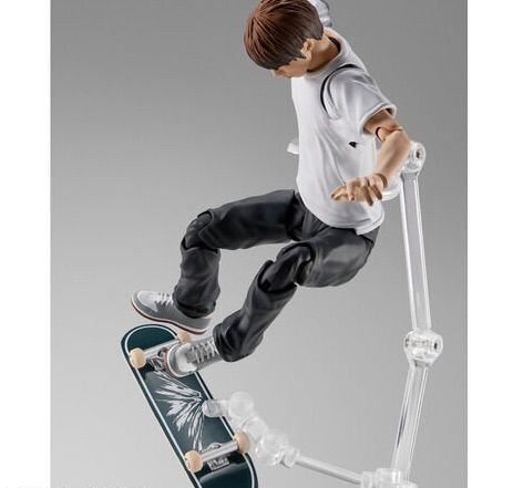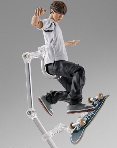 ご本人をスキャニングした立体データをもとに魂のデジタル彩色を採用し、可動と見た目の両軸でリアルさを追求。スケートボードパーツは付属のステージや支柱と組み合わせてさまざまなトリックを再現可能。さらに、ペーパークラフトでストラクチャーが付属し、大会さながらの迫力ある演出が可能に。