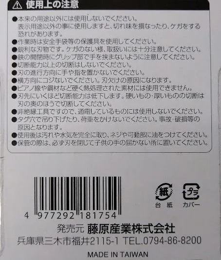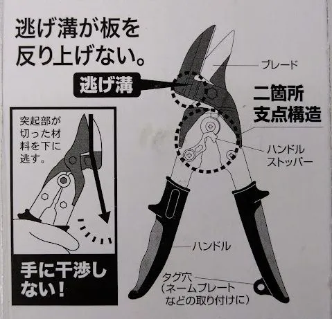二箇所支点構造なので通常の金切鋏に比べ楽に切断できます。