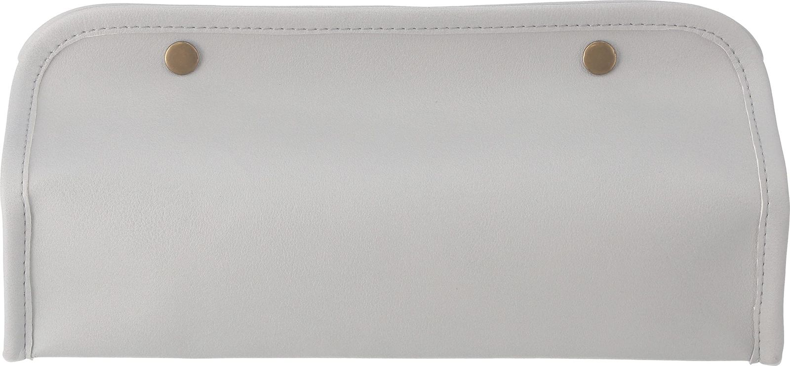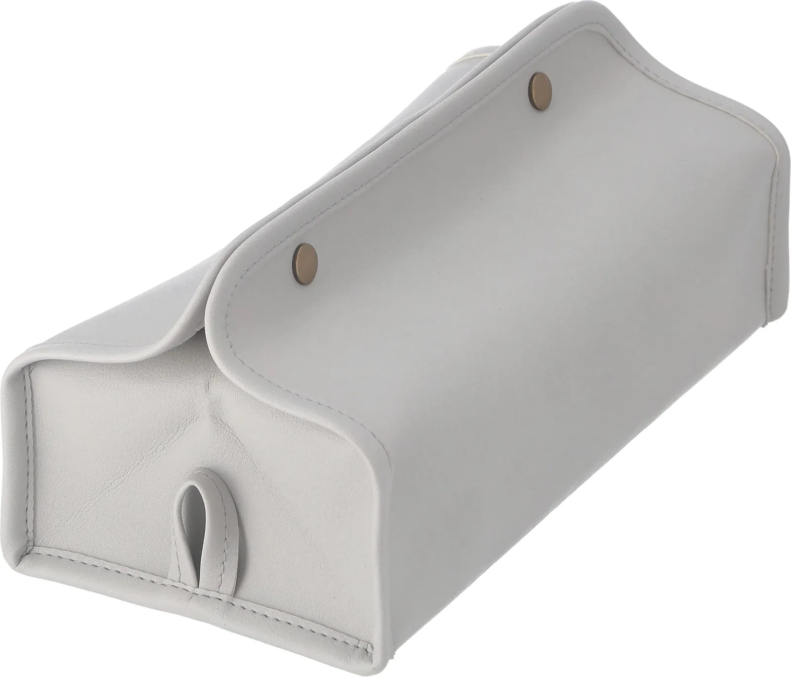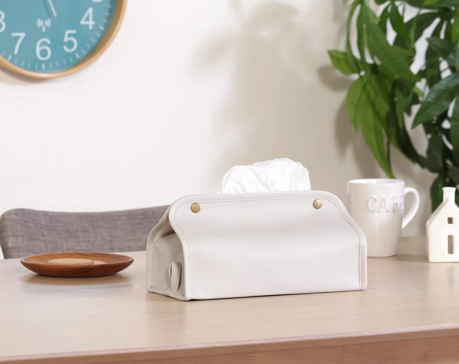 レザー調の素材と金色のボタンを使用した高級感のあるティッシュケース。