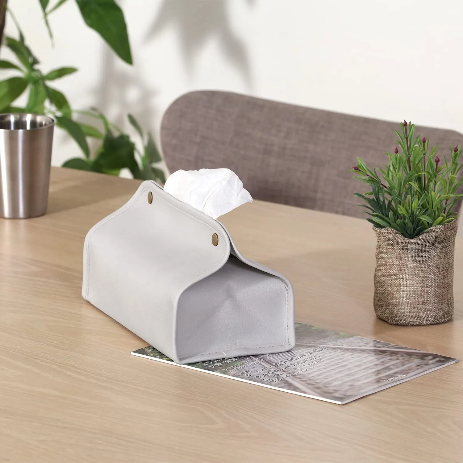 【数量限定】幅26.5×奥行12.5×高さ12.5㎝ グレー ティッシュケース レザー調 37806 不二貿易 小型