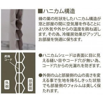 断熱・保温効果があるハニカムシェード『彩』。ハニカム構造が窓と部屋の間に空気層をつくり、断熱・保温効果を高める商品です。