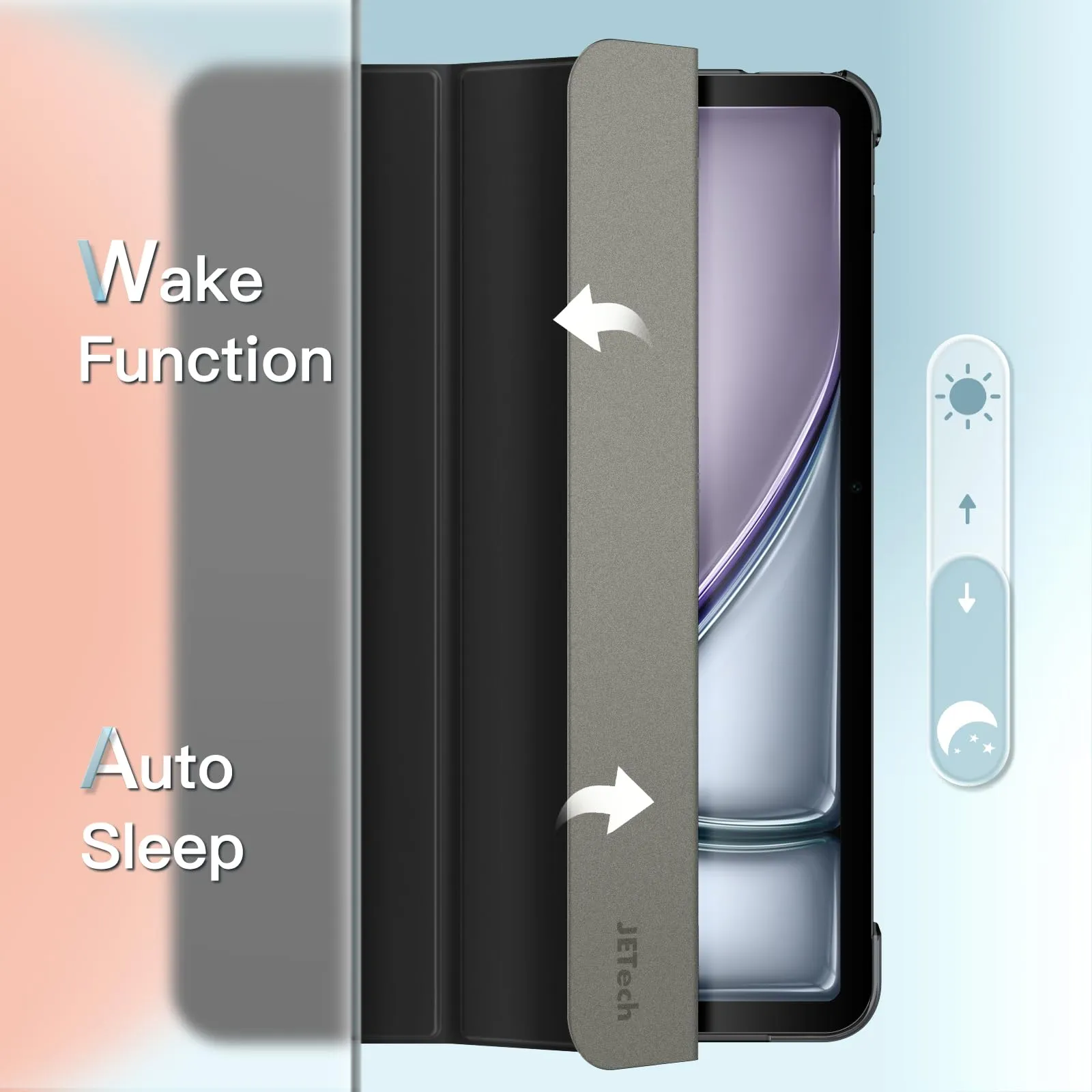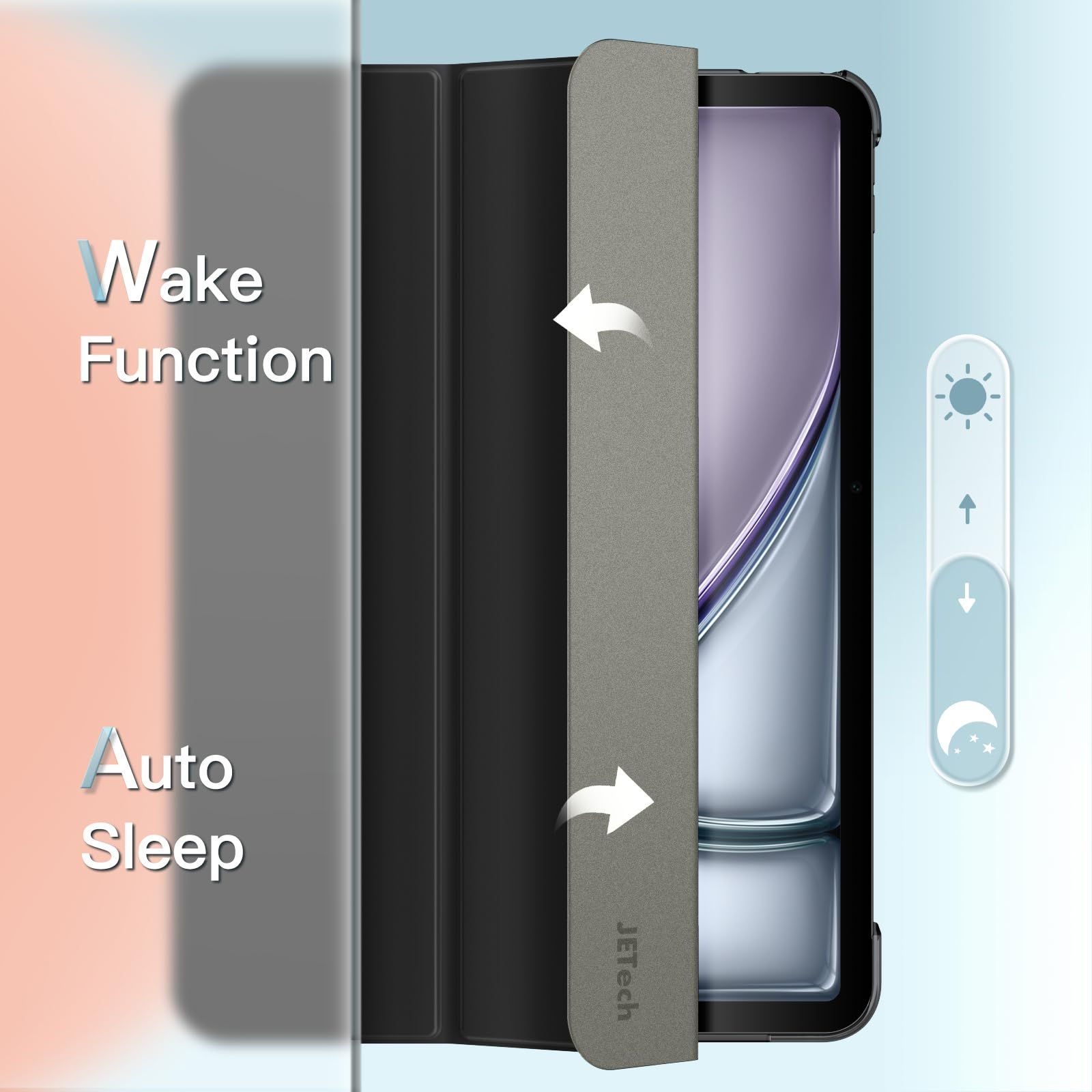 JETech iPad Air 11 インチ M4/M3/M2 (2026/2025/2024), iPad Air 5/4 (2022/2020モデル、10.9インチ)専用 ケース スリムスタンドハードバック ウェイクアップ/オートスリープ機能付き タブレットカバー (ブラック)