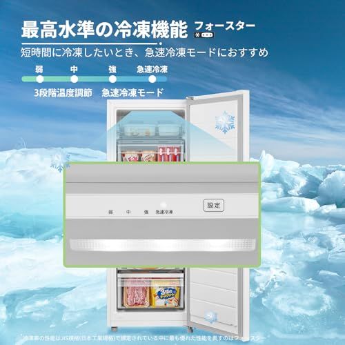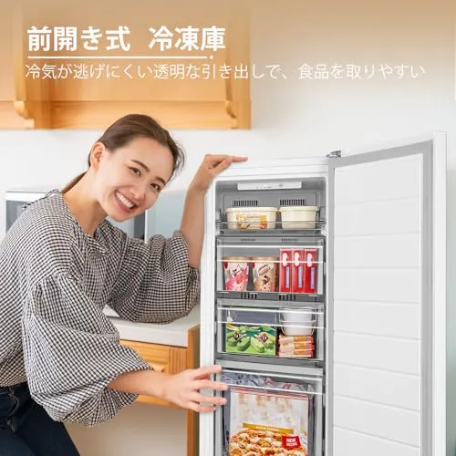 COMFEE' 冷凍庫 135L 霜取り不要 スリム 前開き ノンフロン 温度調節 コンパクト 耐熱天板 省エネ率113% ストッカー 縦型 ファン式 家庭用 RCU140WH1JP(E) ホワイト/