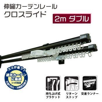 伸縮カーテンレール クロスライド 2mダブル(1.1-2.0m) ダークウッド