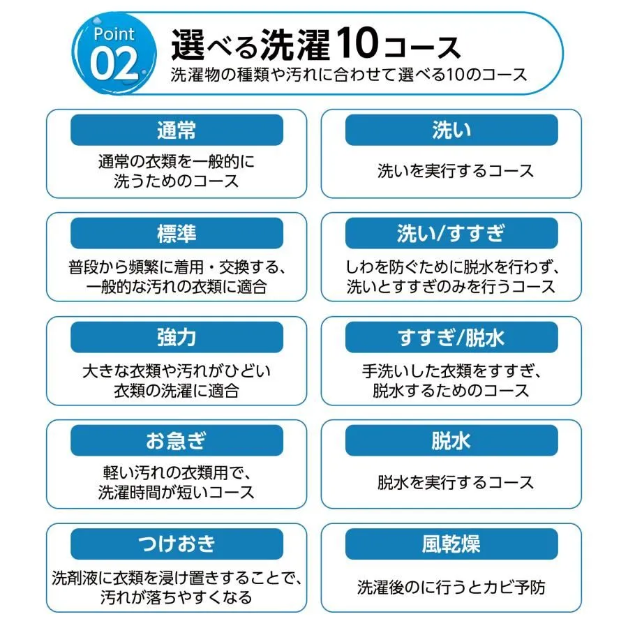 洗剤量・水量の調整だけでなく、乾燥機能・予約タイマーも付いています。