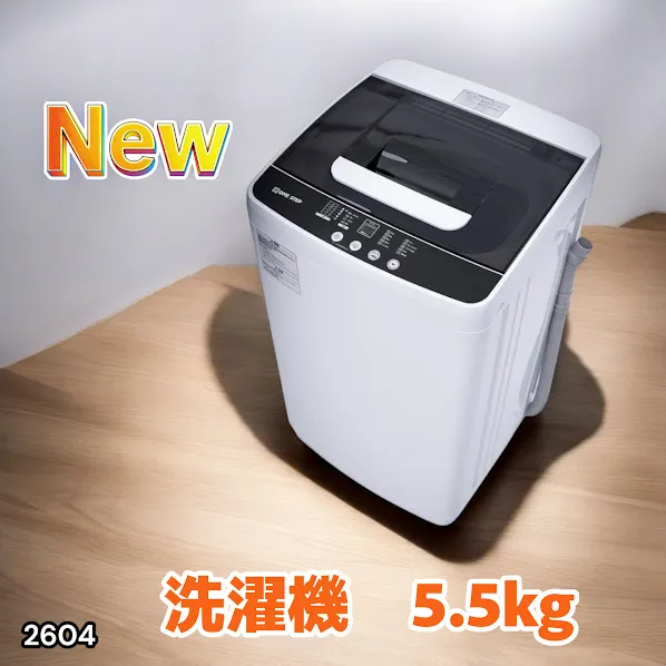 #2604 縦型 全自動 洗濯機 5.5kg ホワイト 1人暮らし 強力水流洗浄 ほぐし運転搭載 簡易乾燥機能付き 選べる洗濯10コース 予約タイマー機能 コンパクト ※一部地域離島別途配送料有
