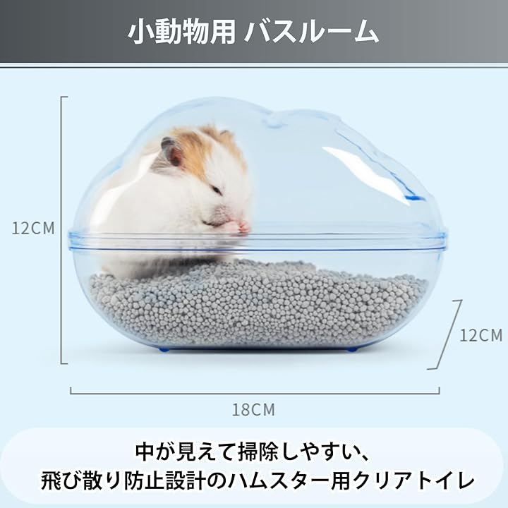 Aurenne 小動物用 バスルーム ハムスター トイレ 砂浴び チンチラ 砂遊び ハウス 遊び場 分解可能 ハリネズミ 透明 (透明, 18x12x12cm)