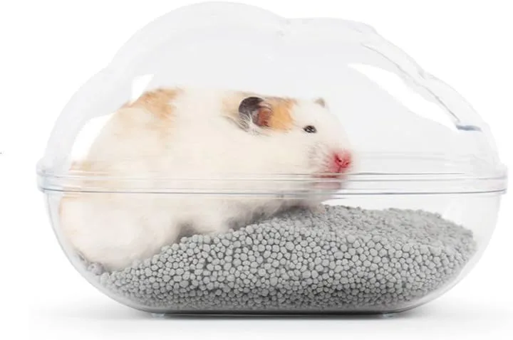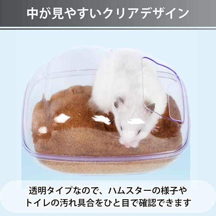 「中が見やすいクリアデザイン」 透明タイプなので、ハムスターの様子やトイレの汚れ具合をひと目で確認できます。