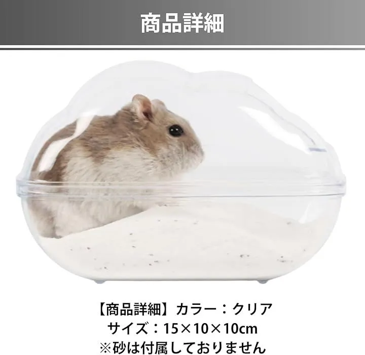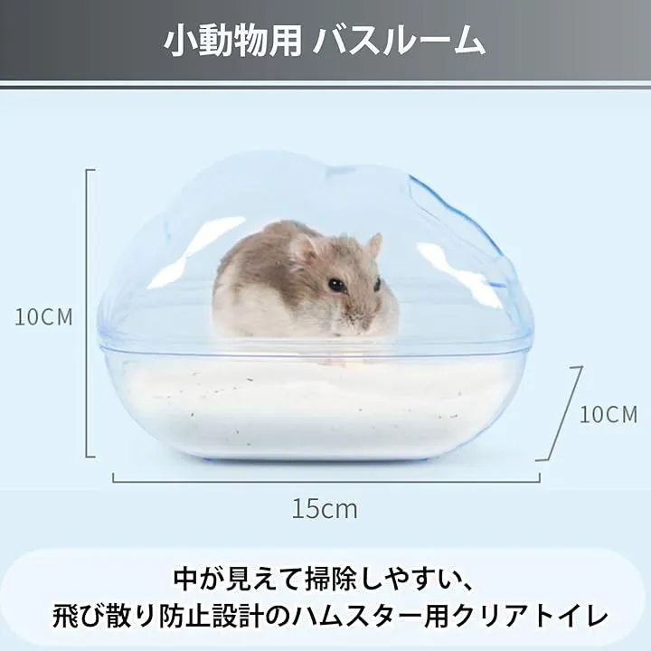 Aurenne 小動物用 バスルーム ハムスター トイレ 砂浴び チンチラ 砂遊び ハウス 遊び場 分解可能 ハリネズミ 透明 (透明, 15x10x10cm)