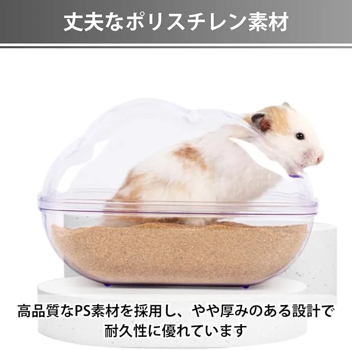 「中が見やすいクリアデザイン」 透明タイプなので、ハムスターの様子やトイレの汚れ具合をひと目で確認できます。