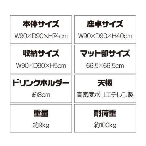 ■本体サイズ(約):幅90cm × 奥行90cm × 高さ74cm 📏