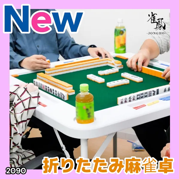 #2090 折りたたみ 麻雀 雀卓 テーブル 台 ホワイト ドリンクホルダー付き コンパクト 収納 2段階 高さ調整 ※一部地域離島別途配送料有