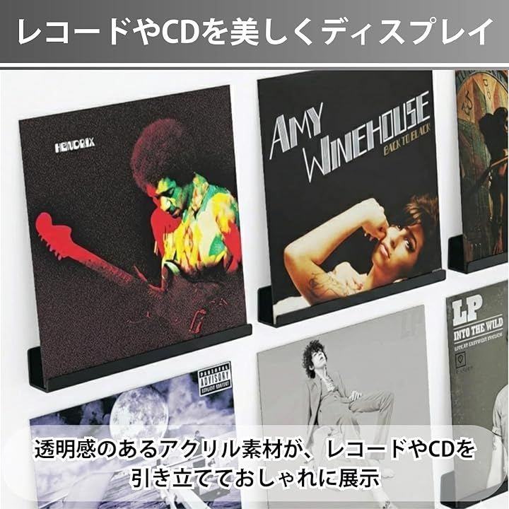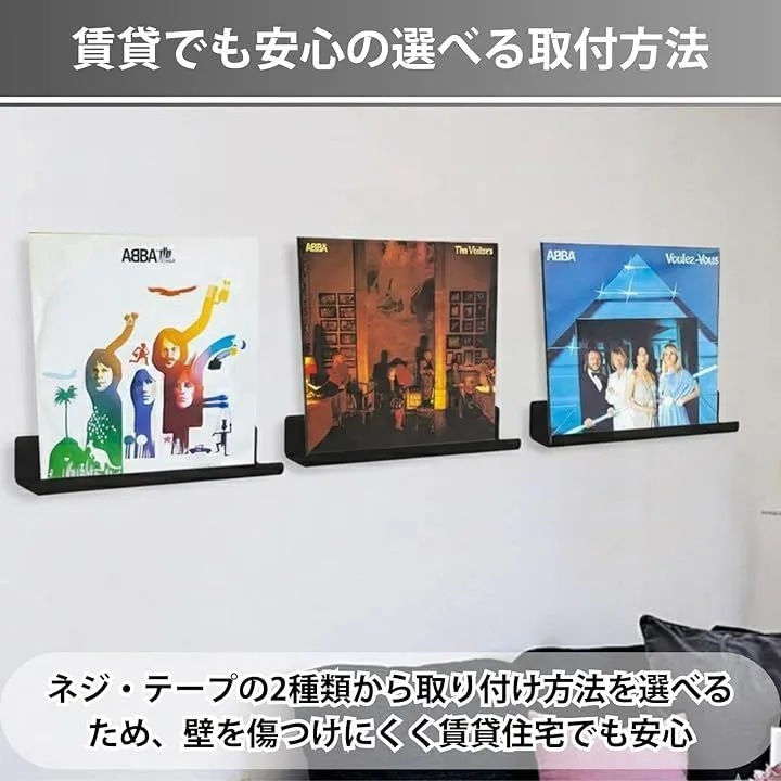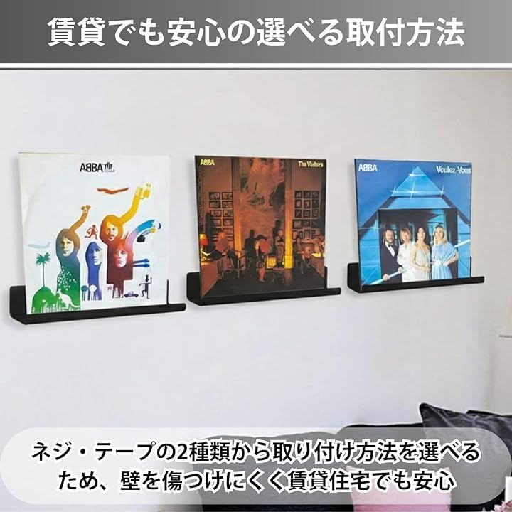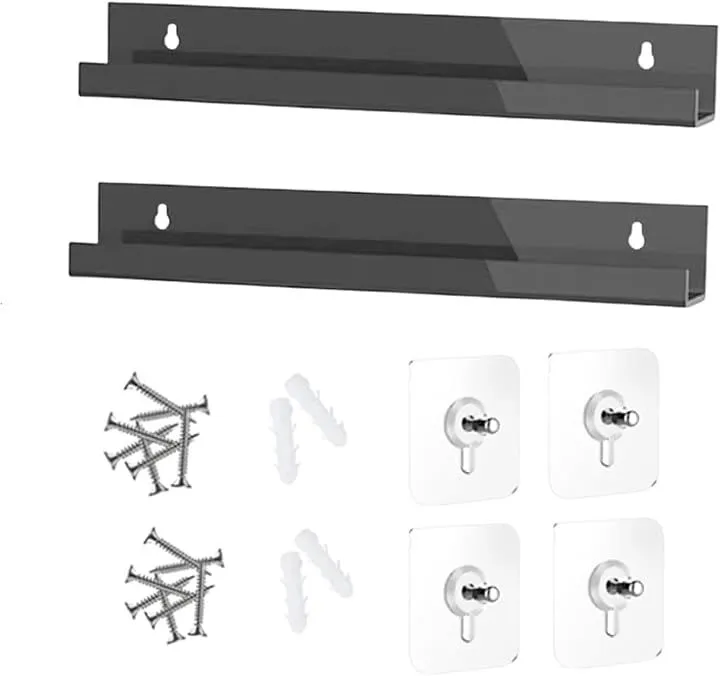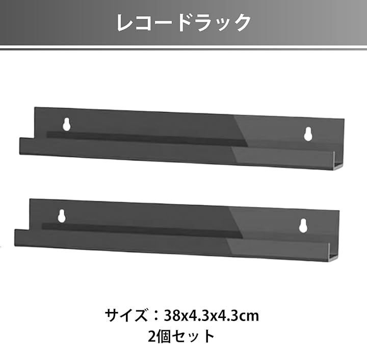 Aurenne レコードラック 壁掛け 賃貸 アクリル 収納 ネジ テープ付属 (ブラック, 38x4.3x4.3cm 2個セット)