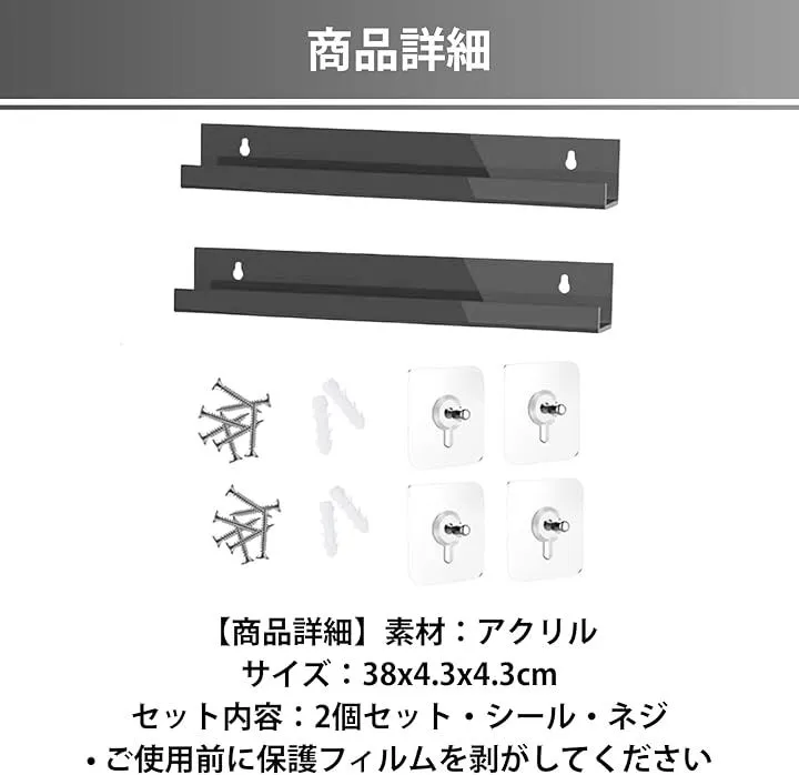 「商品詳細」素材:アクリル カラー:ブラック サイズ:38x4.3x4.3cm セット内容:2個セット・シール・ネジ ご使用前に保護フィルムを剥がしてください