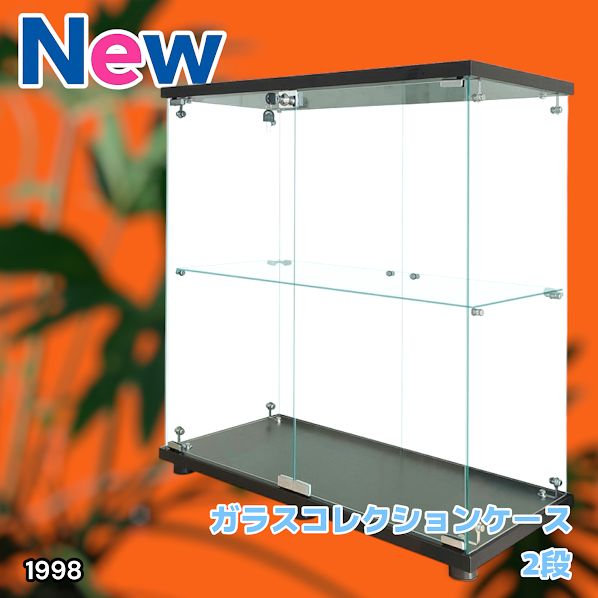 #1998 両扉 強化 ガラス ケース 2段 ブラック 鍵付き 豆脚付き 転倒防止器具付き フィギュア プラモデル プラモ 鑑賞 展示 自宅 店舗 ディスプレイ 付属品 ※一部地域離島別途配送料有