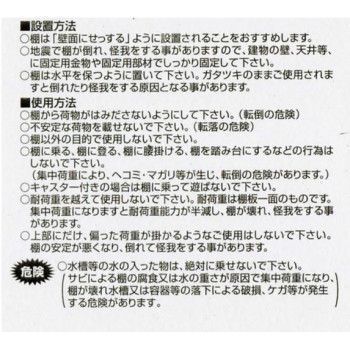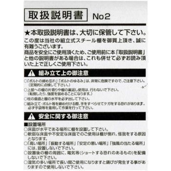 セット内容支柱、棚板、脚キャップ、キャスターセット(ストッパーつき×2、ストッパーなし×2)、取扱説明書