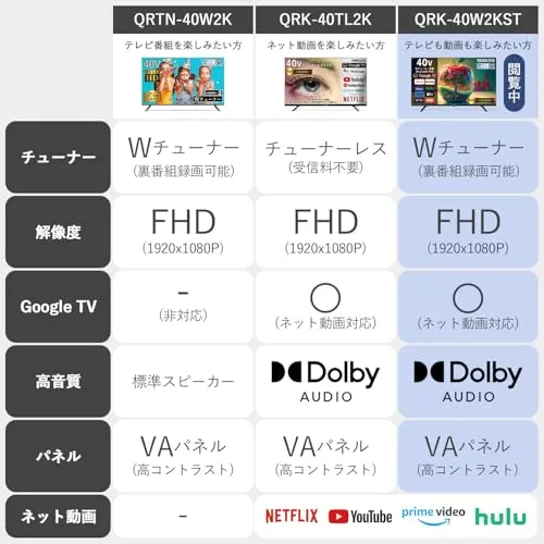 山善 テレビ Wチューナー 液晶 40インチ フルハイビジョン QRK-40W2KST ネット動画対応