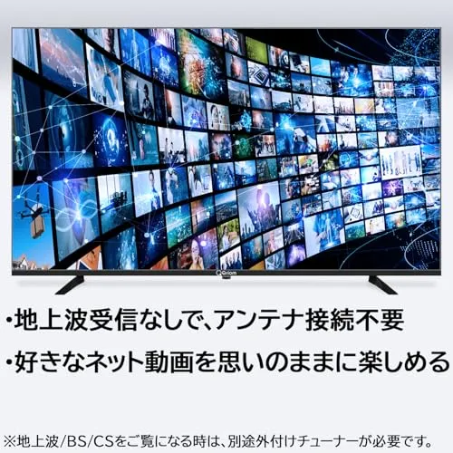 【チューナーレステレビ】「地上波などのテレビ番組は見なくなった」「YouTubeやNETFLIX、primevieoなどをスマホで見てる」そんな方へオススメ、アンテナ接続不要のGoogle TV搭載チューナーレステレビ。豊富なVOD(動画配信サービス)に対応しているので、お好きなコンテンツを思いのままに、大画面で楽しめます。本製品には地上波、BS/CSのチューナーは付いておりません。地上波、BS/CSをご覧になる時は別途外付けのチューナーが必要です。