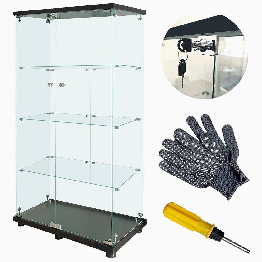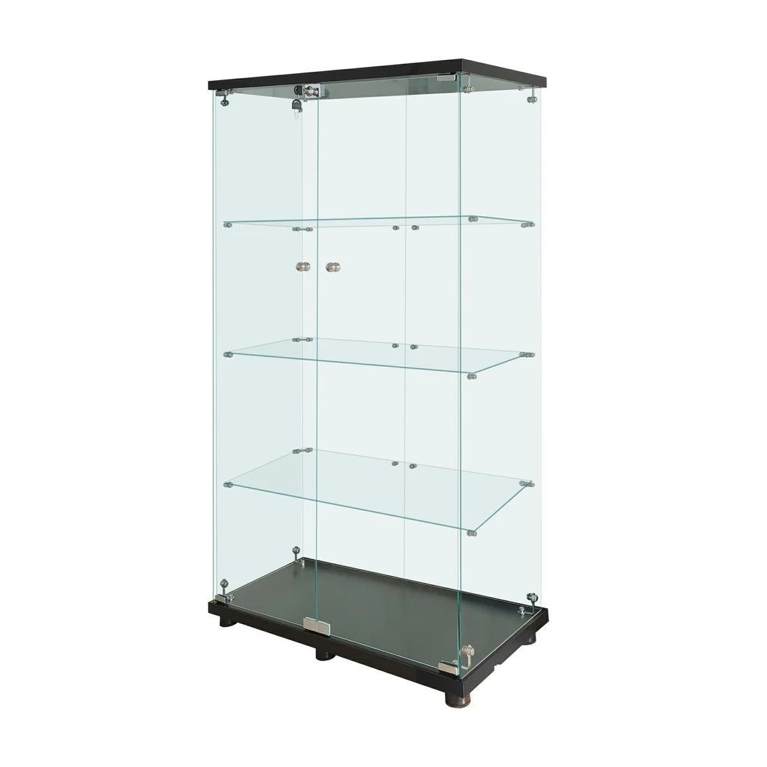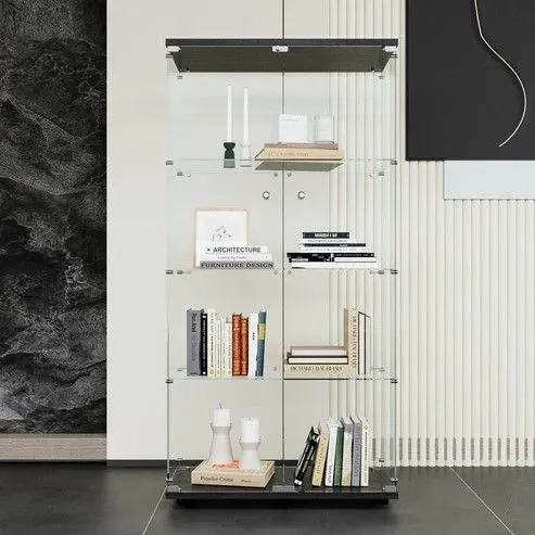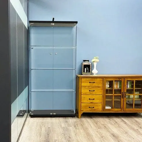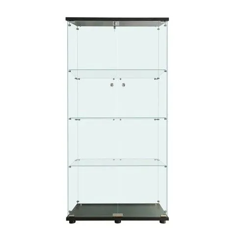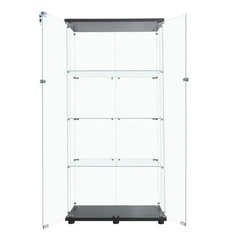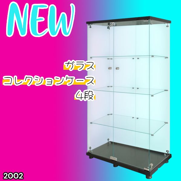 #2002 両扉 強化 ガラス ケース 4段 ブラック 鍵付き 豆脚付き 転倒防止器具付き フィギュア プラモデル プラモ 鑑賞 展示 自宅 店舗 ディスプレイ 付属品 ※一部地域離島別途配送料有