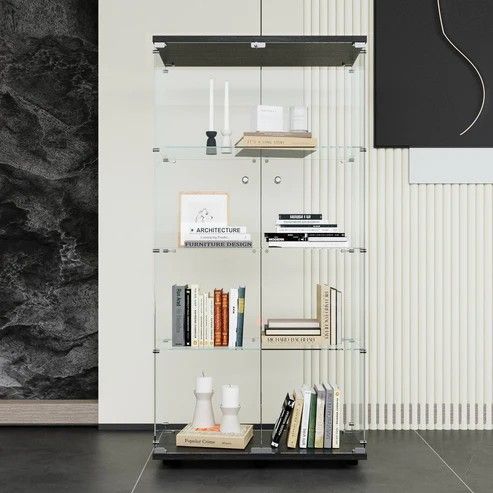 【簡単調整ガラス棚】 ガラス棚板は置くだけ・外すだけで簡単に高さ調整が可能。 飾るアイテムのサイズに合わせてレイアウトを自由に変更できます✨ 1枚あたり耐荷重5kgで、重めのフィギュアや模型も安心して飾れます。 📦