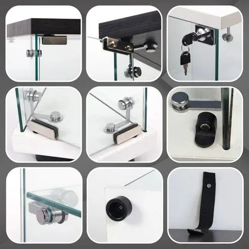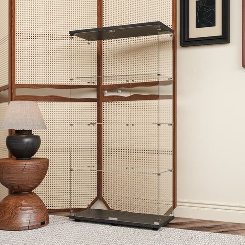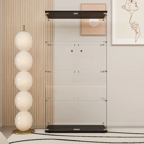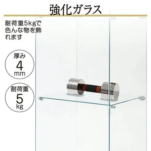 【商品仕様詳細】 ・サイズ:幅80.7×奥行36.5×高さ164cm ・本体重量:約60kg ・ガラス厚み:4mm ・棚板耐荷重:5kg ・材質:強化ガラス・パーティクルボード ・組立目安:2人以上で約80分(※日本語説明書付き) 💎