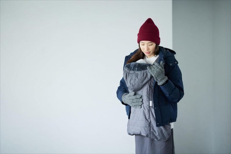 E2849◆未使用 BABYHOPPER ベビーホッパー マルチプル防寒ケープ グレー 抱っこ紐 抱っこひも スリング 抱っこひもカバー ケープ はっ水加工 ボア ベビー用品 CKBH040500