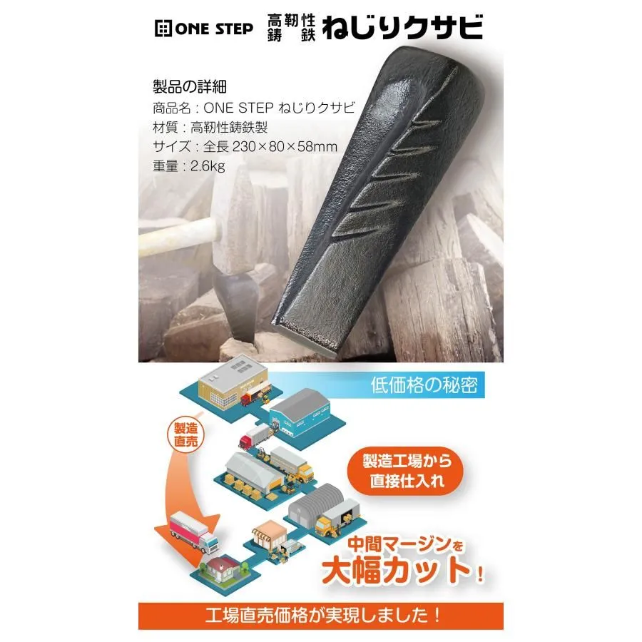 【商品詳細】 ・サイズ:全長 約230 × 80 × 58mm ・重量:約2.6kg/個 ・内容:ねじりクサビ ×2個セット 🔥 薪割りの効率を一気に高めたい方におすすめのアイテムです! ⚠️注意事項⚠️ ✅️多少の汚れや擦れなどがある場合がございます。元箱などにも若干のスレや汚れ等がある場合がございますがご容赦下さい。 ✅️入荷時期により色味や濃淡が異なる場合がございます。 ✅️画像の商品は光の照射や角度、撮影状況、お使いのモニター環境により、実物と色味が異なる場合がございます。 🛒当ショップ運営について🛒 ✅️こちらの商品はお客様の都合(サイズ・型番・カラー違い等)での返品や交換は受け付けておりませんのでご理解お願い致します。 ✅️同時に他のショップやフリマ等にも出品しておりますので、同じタイミングでご購入される場合もございます。その場合、先にご購入された方を優先しての販売となります。 ✅️当ショップ運営時間や休日の都合で大変申し訳ございませんが、2〜7日間ほどお時間が経ってキャンセルになる場合もございますのでご了承下さい。 ✅️当社は土日祝日、GW、お盆、年末年始は休みになっております。休日にいただいたコメントの返信や商品の発送などは翌営業日の対応になります。 ✅️当ショップの運営方針や説明欄をお読み頂き、ご理解ご納得いただいた上でご購入お願い致します。 最後までご覧いただきましてありがとうございました✨️