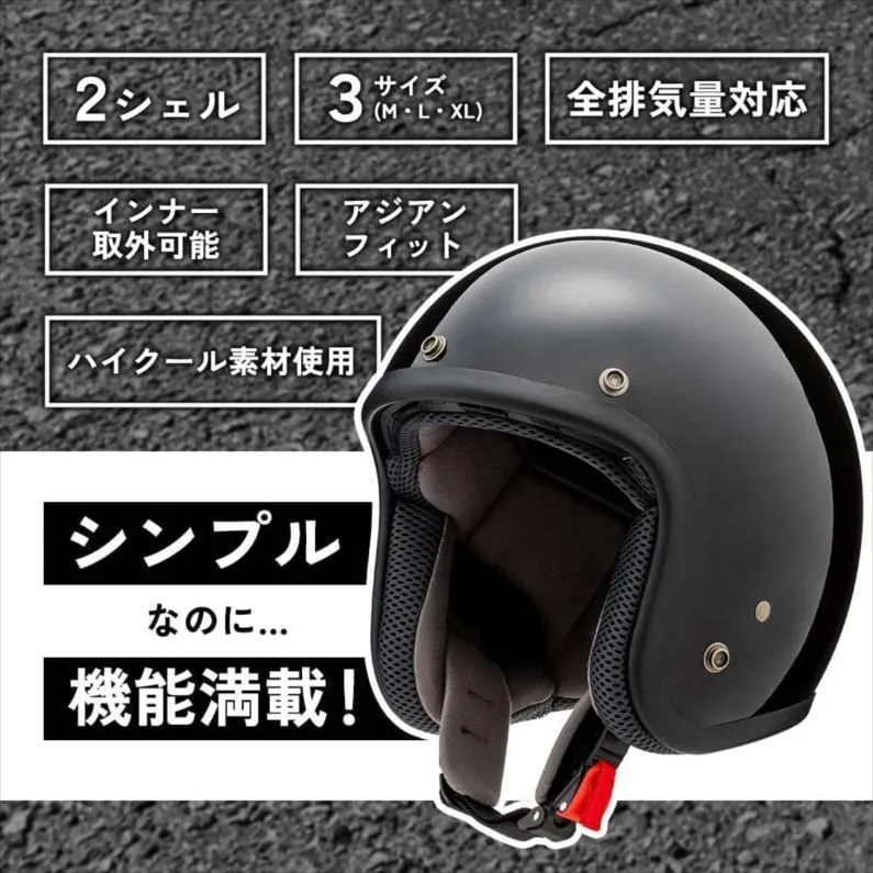 E2726◆未使用 山城(yamashiro) バイク用 ジェットヘルメット YH-001 フラットブラック Mサイズ(57~58cm) 全排気量対応 インナー脱着可能 YH-001F.BK/M