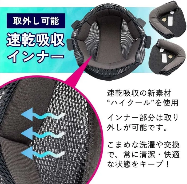 【快適な着用感を実現する「ハイクールインナー」採用】 速乾・吸汗性に優れた新素材で、夏場でもムレにくく快適。インナーは取り外し可能で、いつでも清潔に保てます。