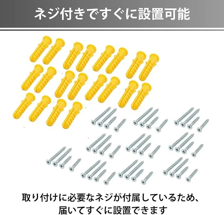 取り付けに必要なネジが付属しているため、届いてすぐに設置できます。