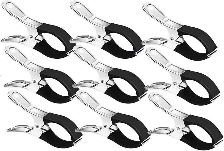 Aurenne 洗濯バサミ ステンレス 大 洗濯ばさみ 強力 大きめ 物干し 布団ばさみ 防風 竿ピンチ すべらない (ブラック 9個, 全長:約12cm 持ち手幅:約6.5cm 最大開口部:約7cm)
