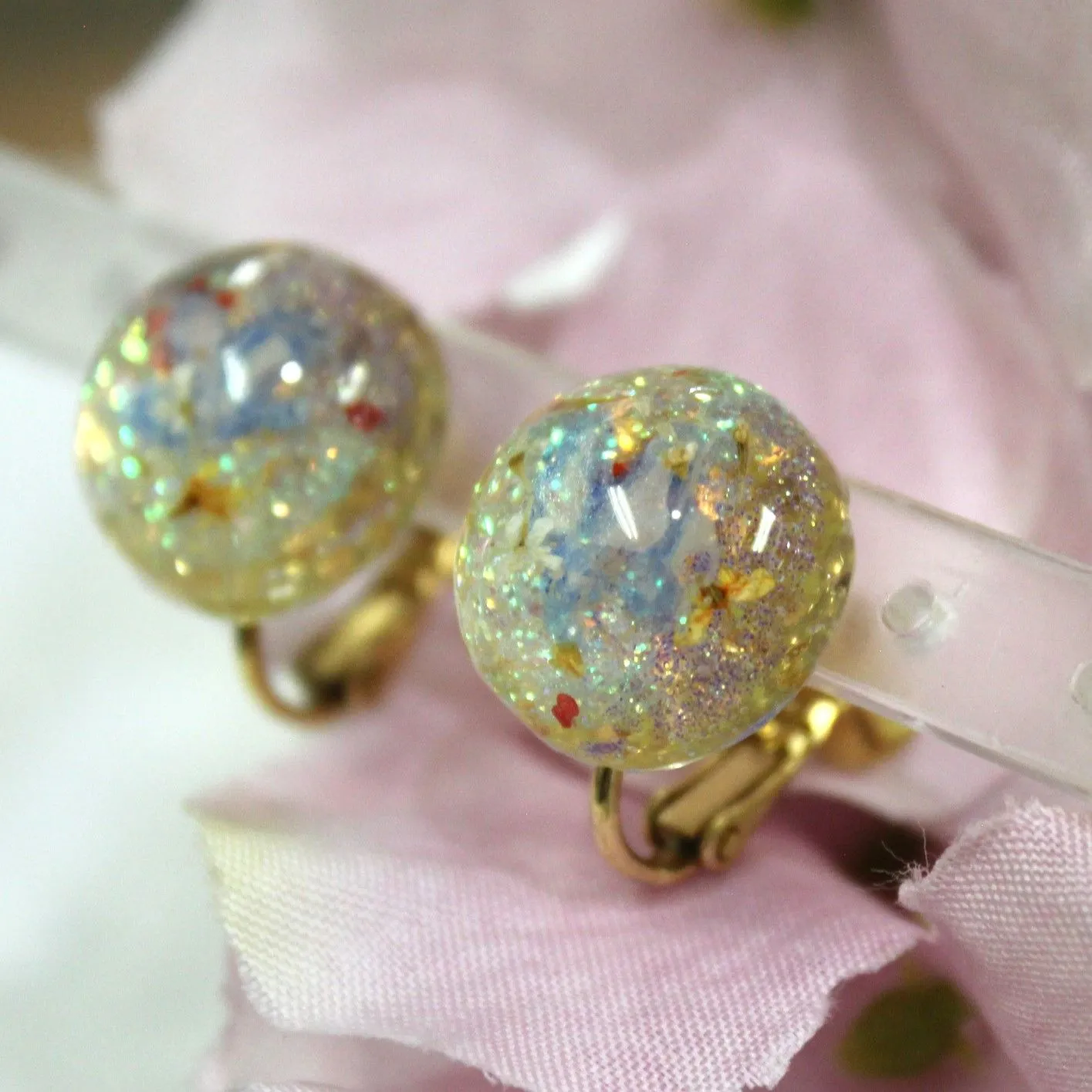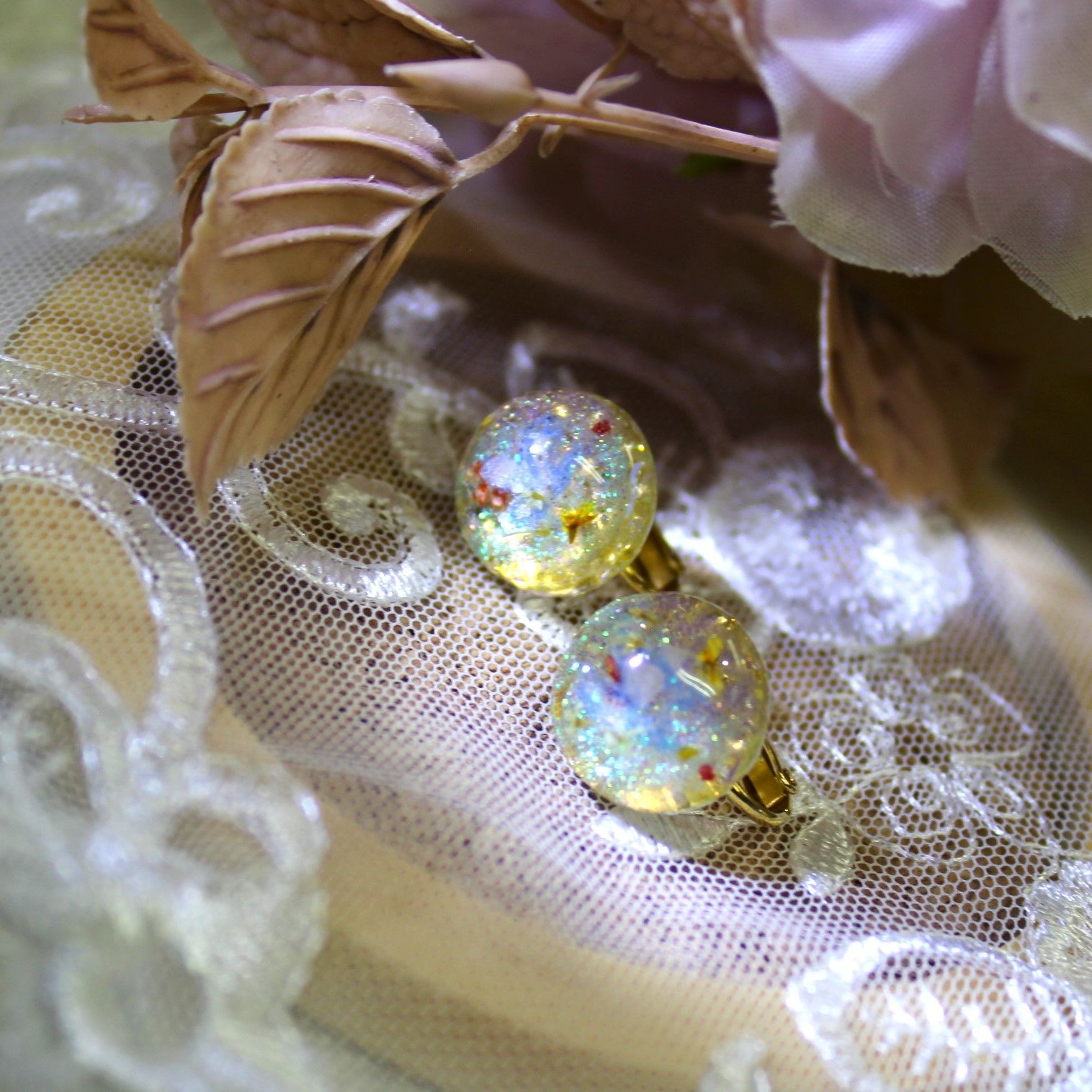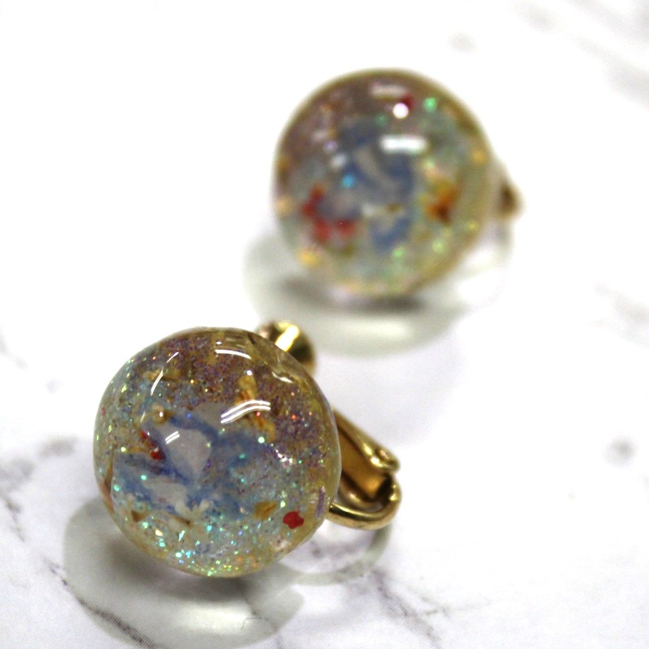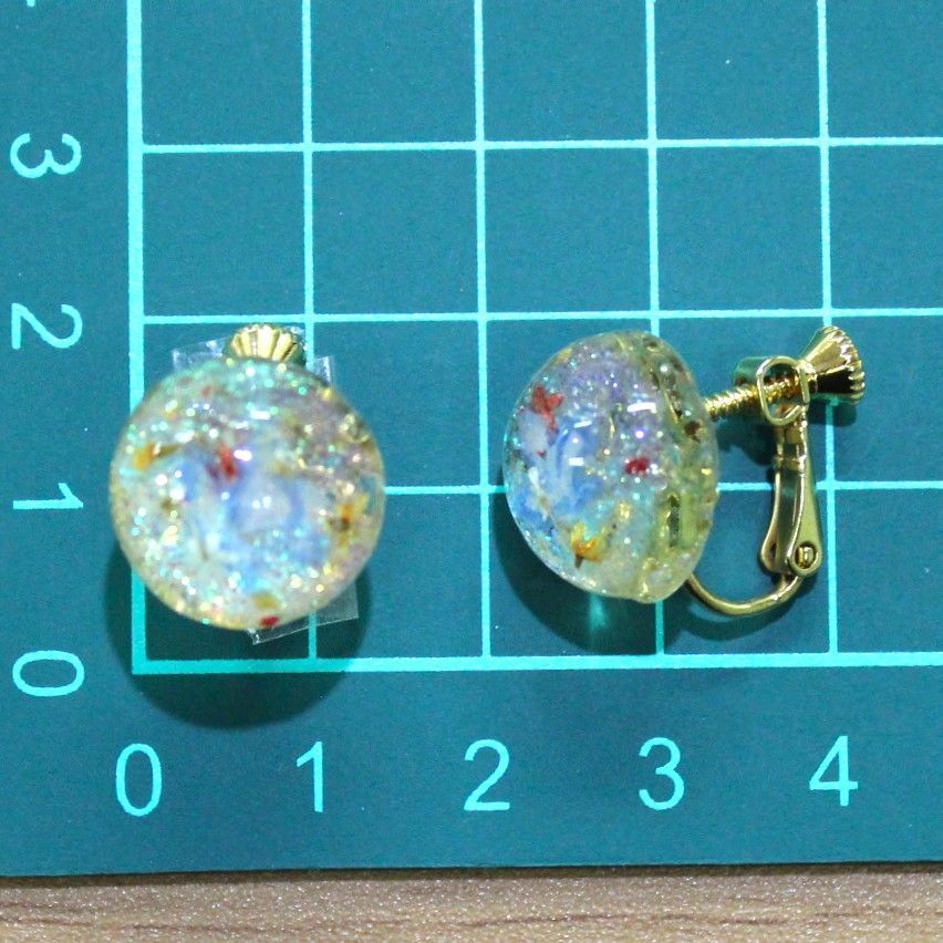 UVレジン イヤリング すかしパーツ 押し花 ラメ アクリルえのぐ