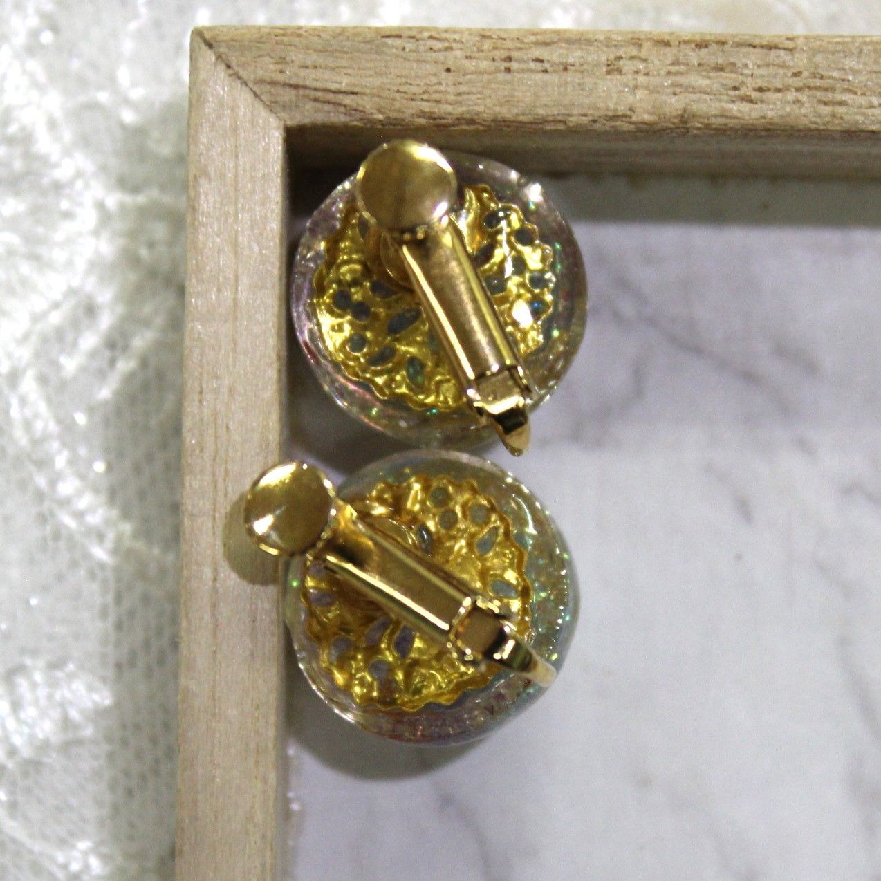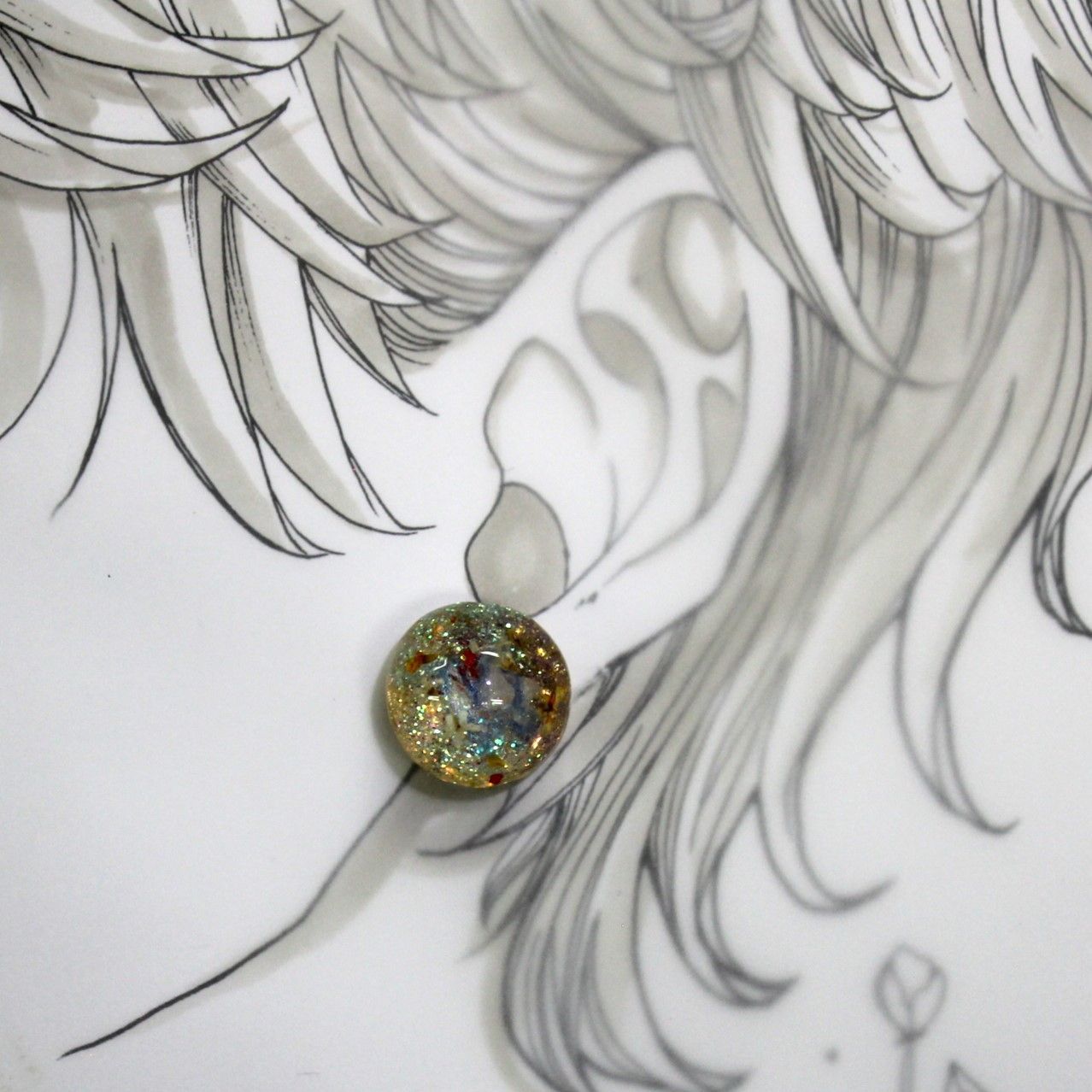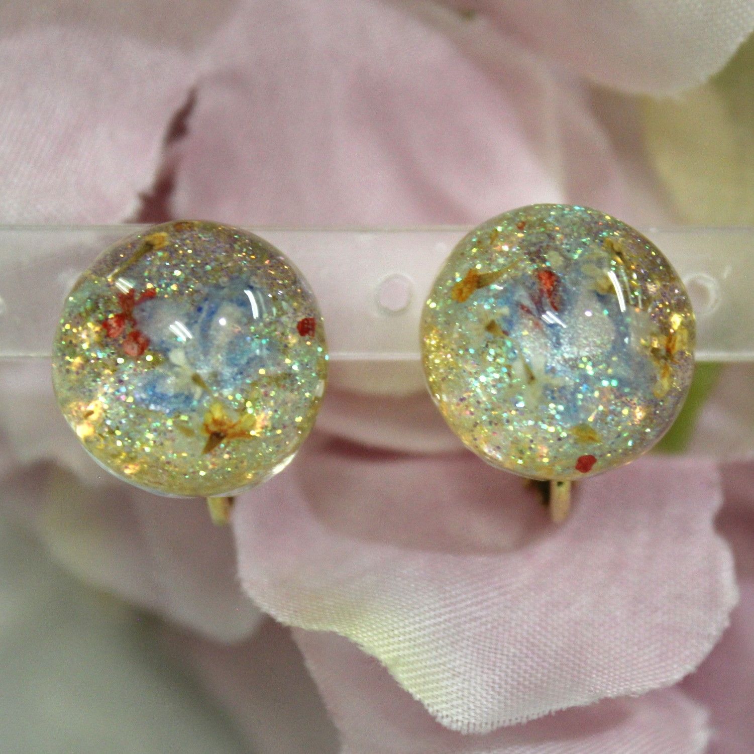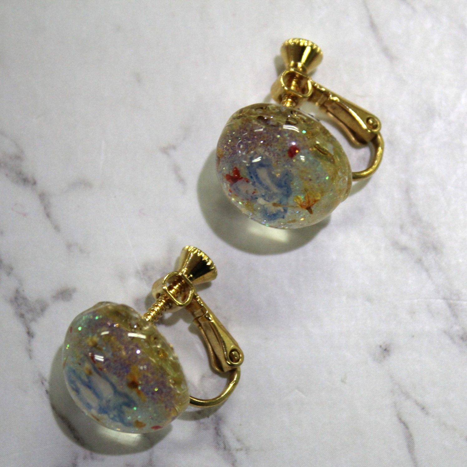 UVレジン イヤリング すかしパーツ 押し花 ラメ アクリルえのぐ