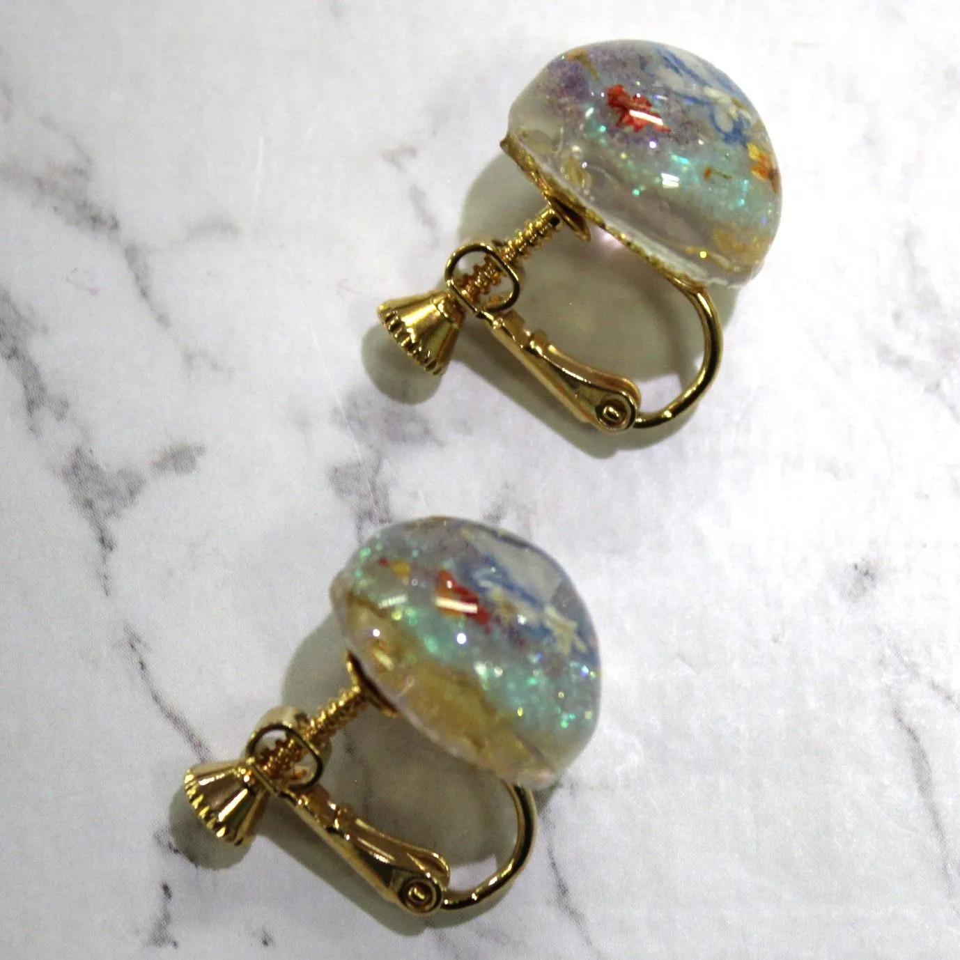 封じられた小宇宙の水玉イヤリング キラキラマルチカラー ゴールド 大人かわいい爽やかアクセサリー ハンドメイド oh-02349