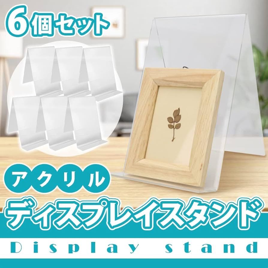 ●トップ写真と実物写真が微妙に違う事がありますので、購入の際は必ず実物写真をご確認の上ご購入お願いします。 分からない事がありましたらコメント下さい。 目につきやすい絶妙な角度で視認性抜群!お店のディスプレイやご自宅の見せる収納にお勧めなアクリルスタンド6個セットです。 クリアカラーで主張しないデザインが魅力です。飾るアイテムや場所を選ばず、様々なシーンでお使い頂けます。 幅広めに設計されたスタンドにより、安定感も◎耐久性に優れたアクリル素材を使用しているため長くご愛用頂けます。