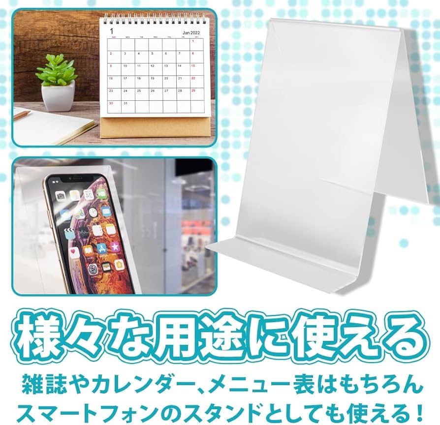 展示台 アクリルスタンド POP 書籍 ノート カード スマホ 多用途 ディスプレイ クリア (6個セット)