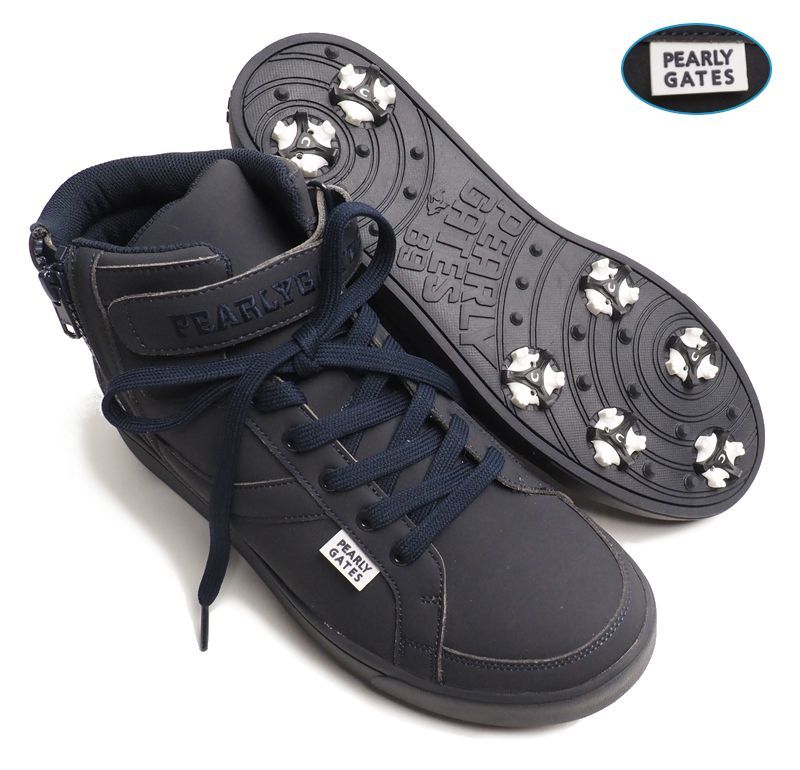 新品定価35200円 PEARLY GATES パーリーゲイツ エコレザー ソフトスパイク ミドルカット ゴルフシューズ27.5㎝濃紺(120) 収納袋付