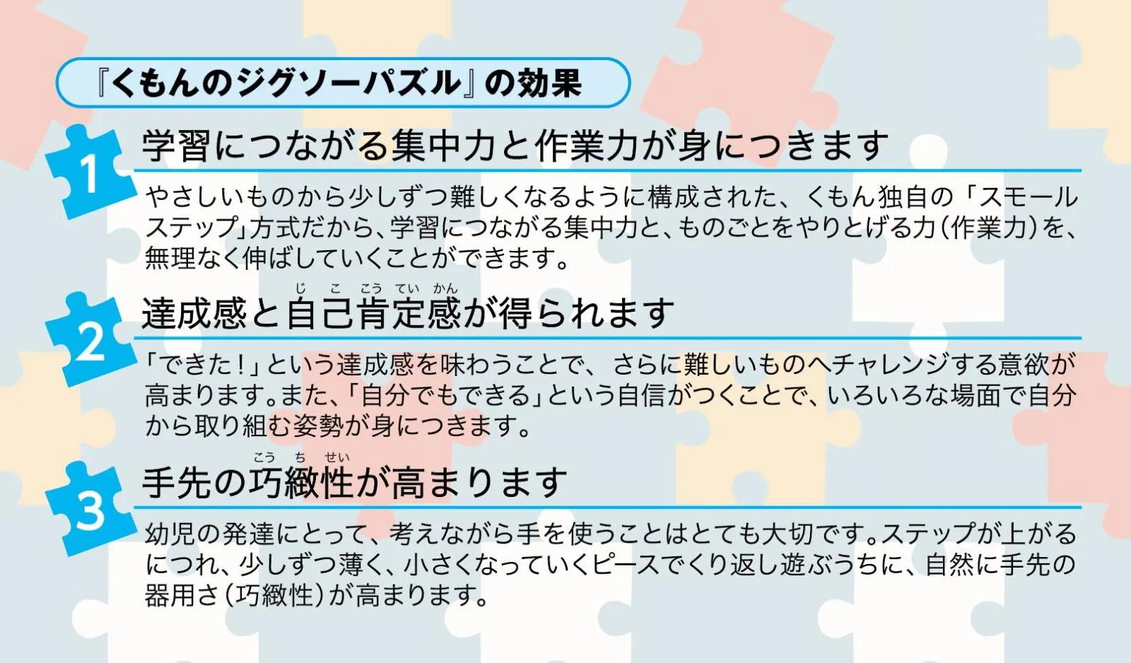 遊びながら学習につながる集中力と作業力を伸ばす「スモールステップ」方式