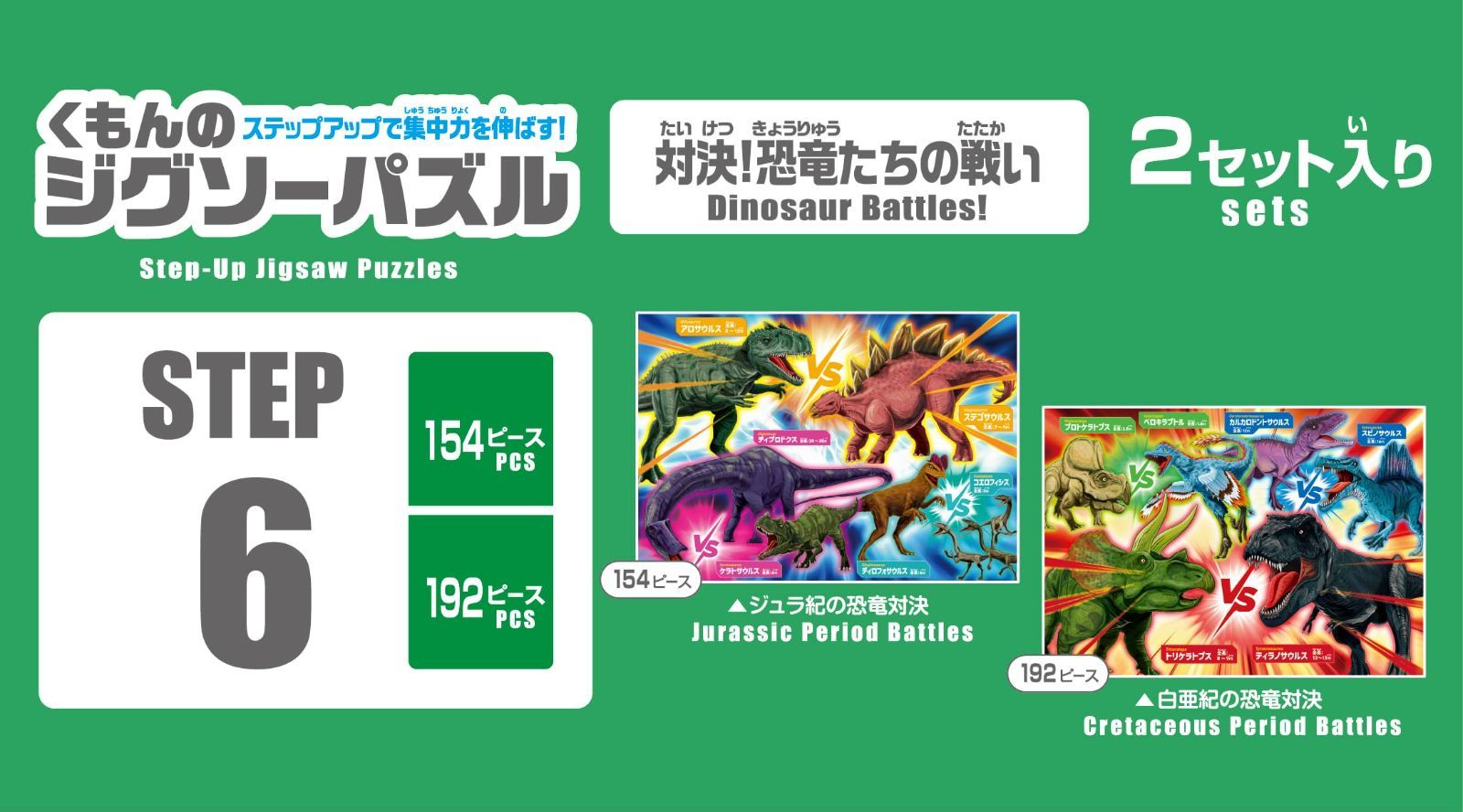 154・192ピース 知育玩具 完成サイズ42.0×29.7㎝ 子供ジグソー 3.5歳以上 対決!恐竜たちの戦い STEP6 JP-64 くもんのジグソーパズル PUBLISHING) KUMON くもん出版(KUMON